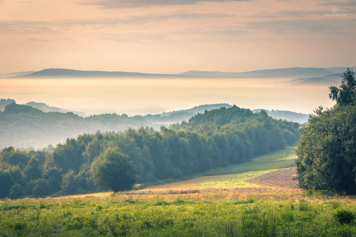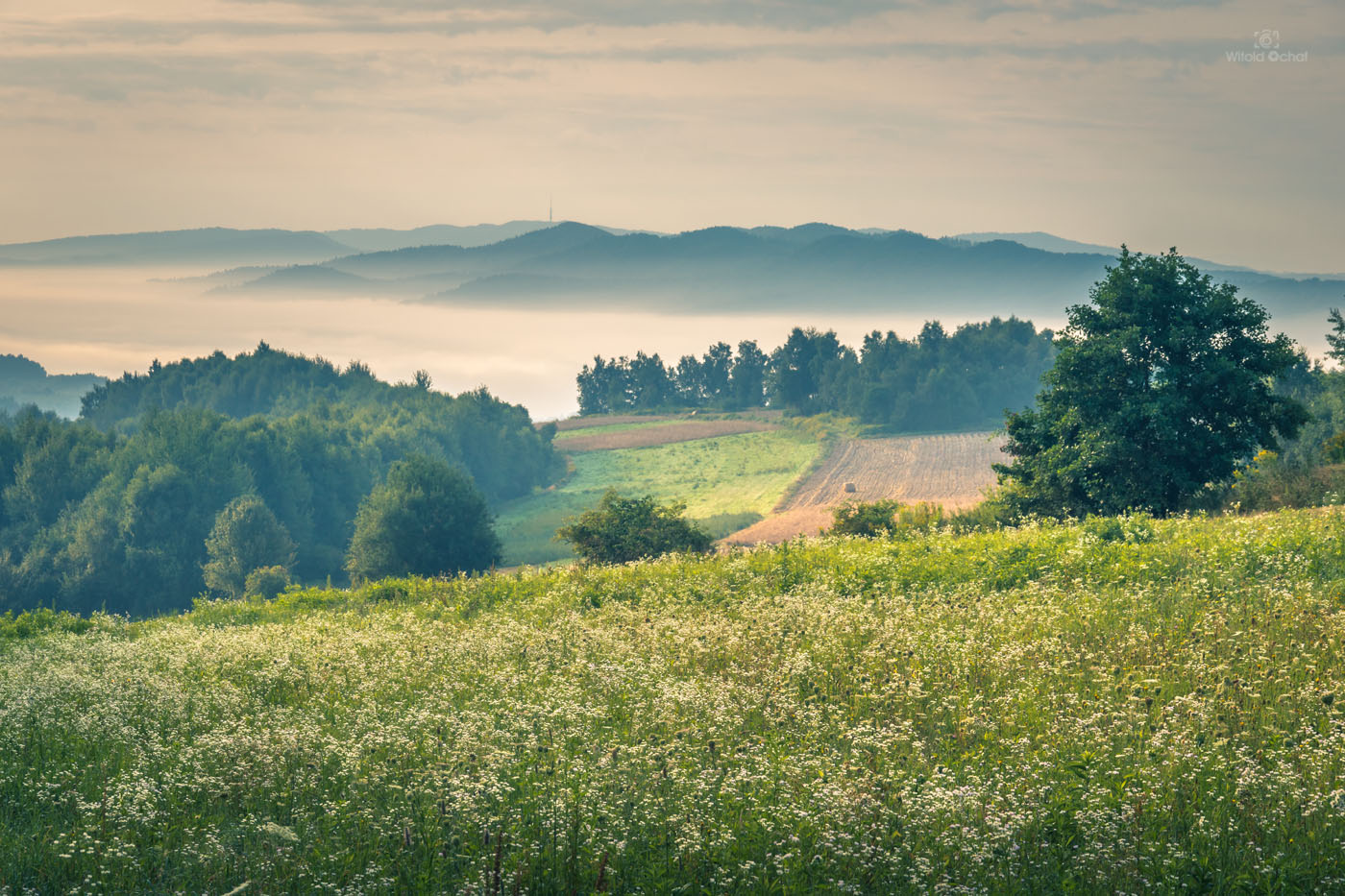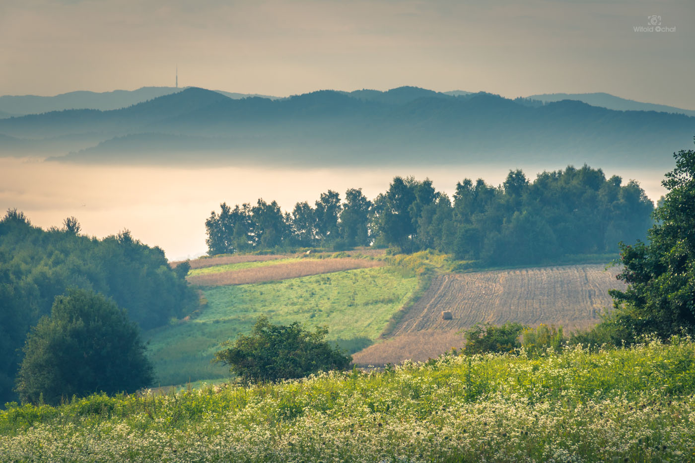 Jednak właśnie to szare, rozproszone światło stworzyło swoisty klimat pasujący do mgieł zalegających w dolinach. Nieco mroczny klimat, choć to przecież ranek, początek dnia. Każdy rodzaj pogody zasługuje na swoje pięć minut na fotkach.