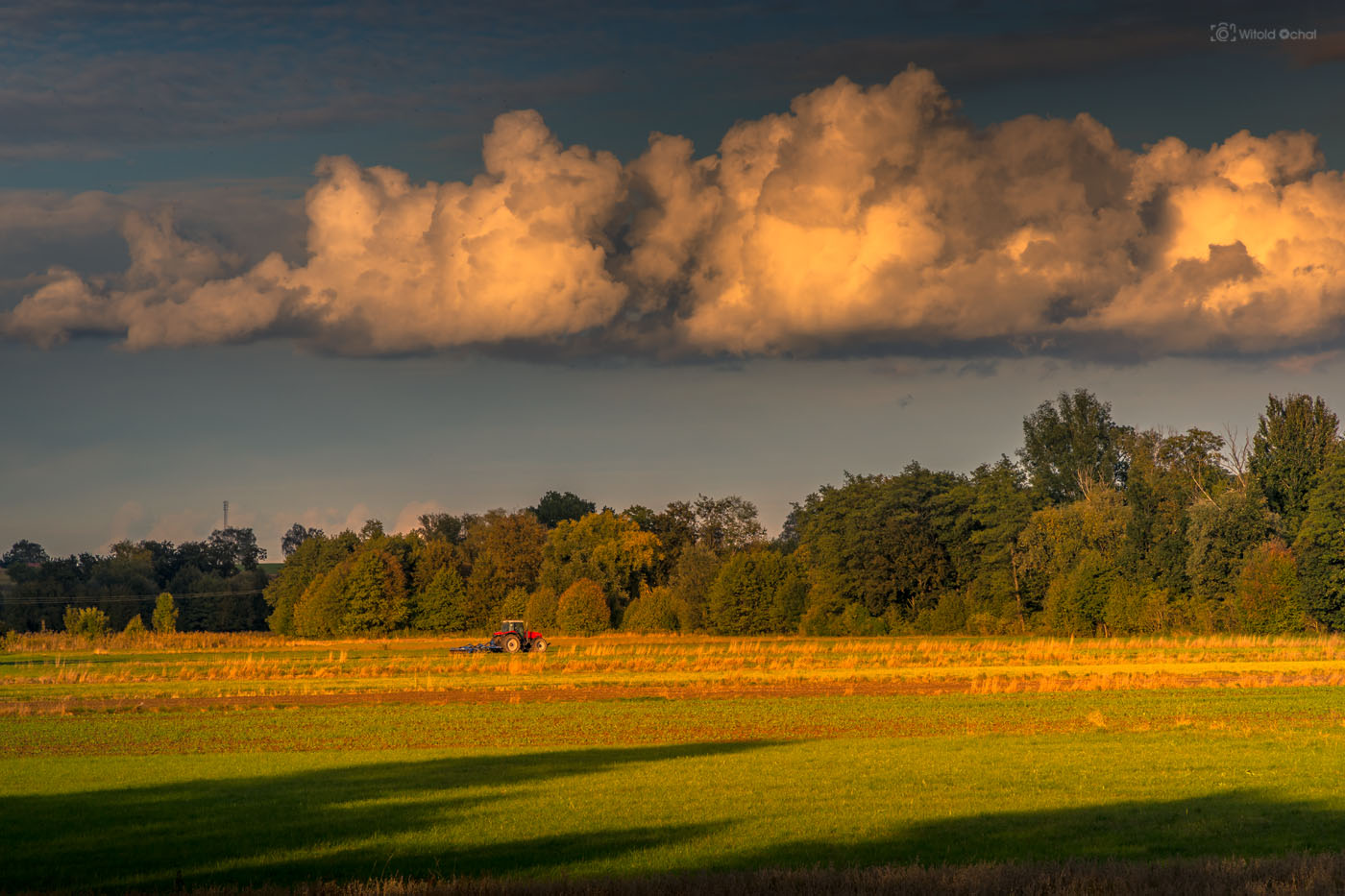 Pogoda dopisywała, więc można było nadrobić zaległości w polu. A pracujący traktor, zwłaszcza w tak cudownych okolicznościach przyrody to świetna ozdoba pięknego krajobrazu.