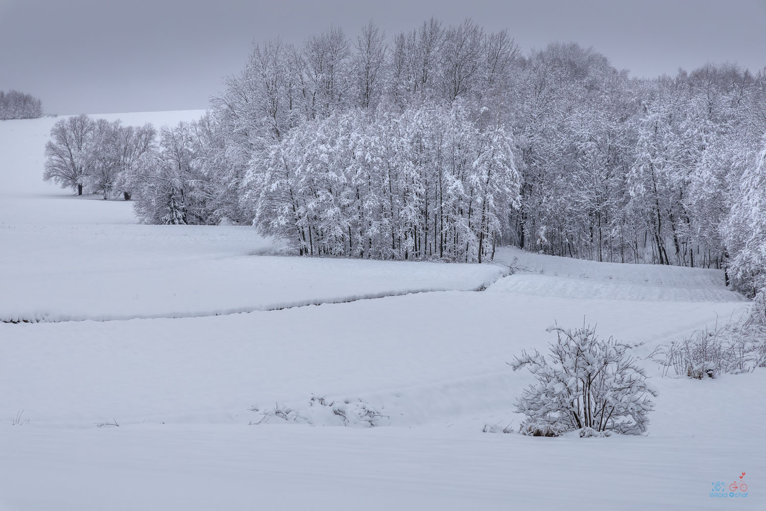 Wobec tego nie próbuję podejść bliżej, aby ich nie niepokoić, choć one pewnie zauważyły mnie przejeżdżającego rowerem i teraz czają, czy nie stanowię dla nich zagorżenia. Powoli odwracają się i odchodzą, choć mały danielek robi to niechętnie.