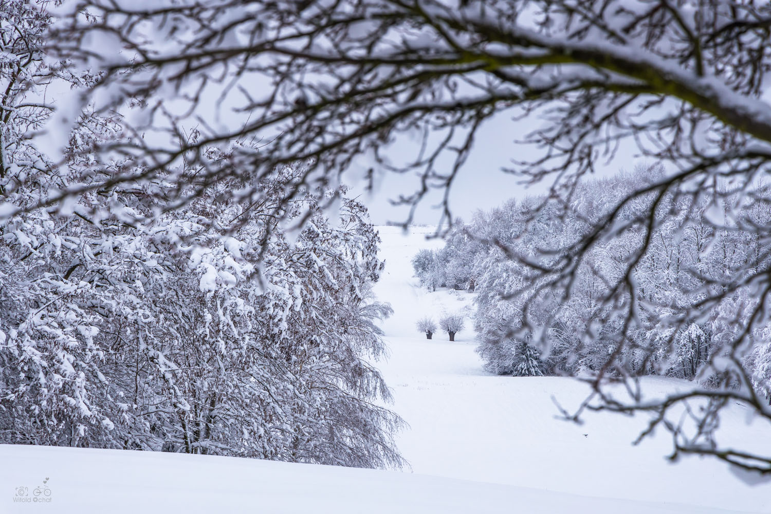 Październik ubiegłego roku. Jadę sobie rowerem serwisówką wzdłuż autostrady. Wtem coś podejrzanego miga mi po mojej prawej stronie w wąskiej przecince pomiędzy chaszczami. Zatrzymuję się, wyciągam aparat i skradam za uschniętymi nawłociami. Są tak daleko, że jeszcze nie wiem, że to nie sarny a daniele. I to mama z dzieckiem! Widzę to dopiero na ekranie aparatu.