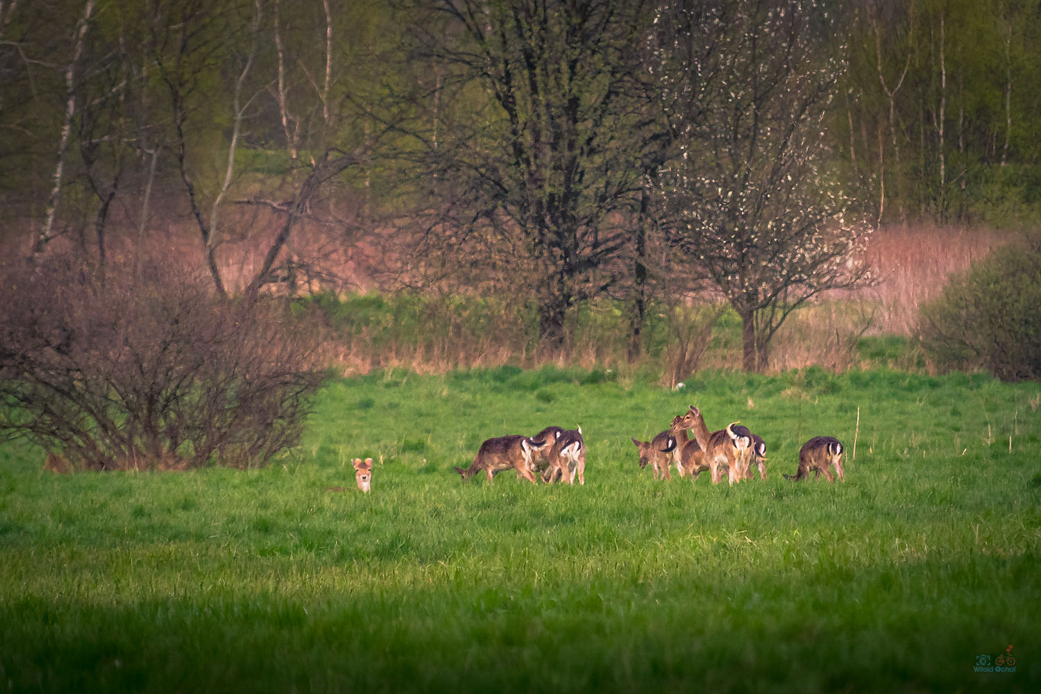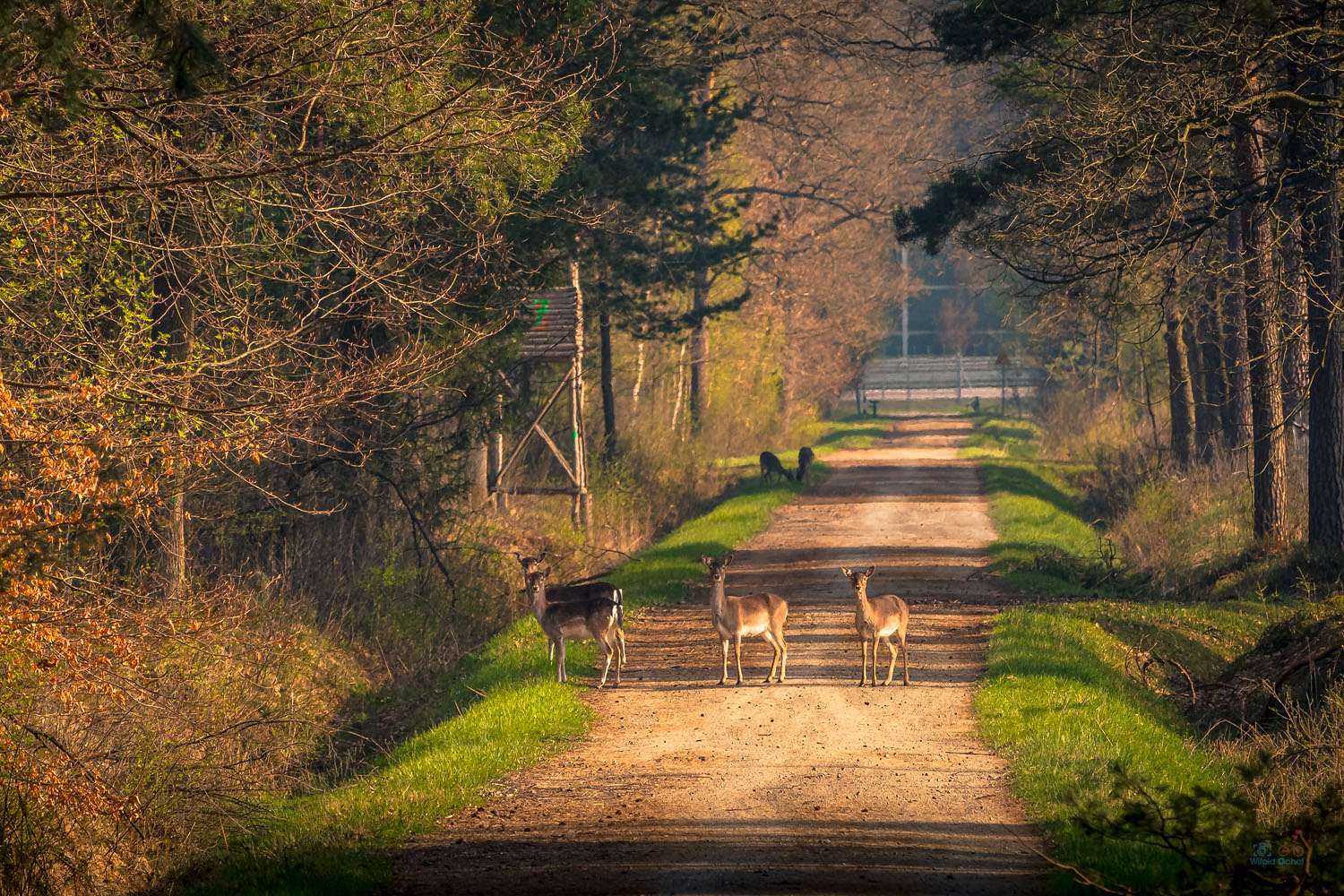 Tylko zacząłem jechać, miałem za sobą kilometr, może dwa. Było niewiele po świcie, a na termometrze 2 ° C na plusie. Zatrzymałem się, aby ubrać rękawiczki. Zerknąłem przed siebie, a tam jelonek przebiega przez dorgę. Za nim kolejny, później łania. Szybko wyciągnąłem obiektyw, a tam jeszcze kilkanaście powoli, dostojnie i niespiesznie przechodzących jelonków.