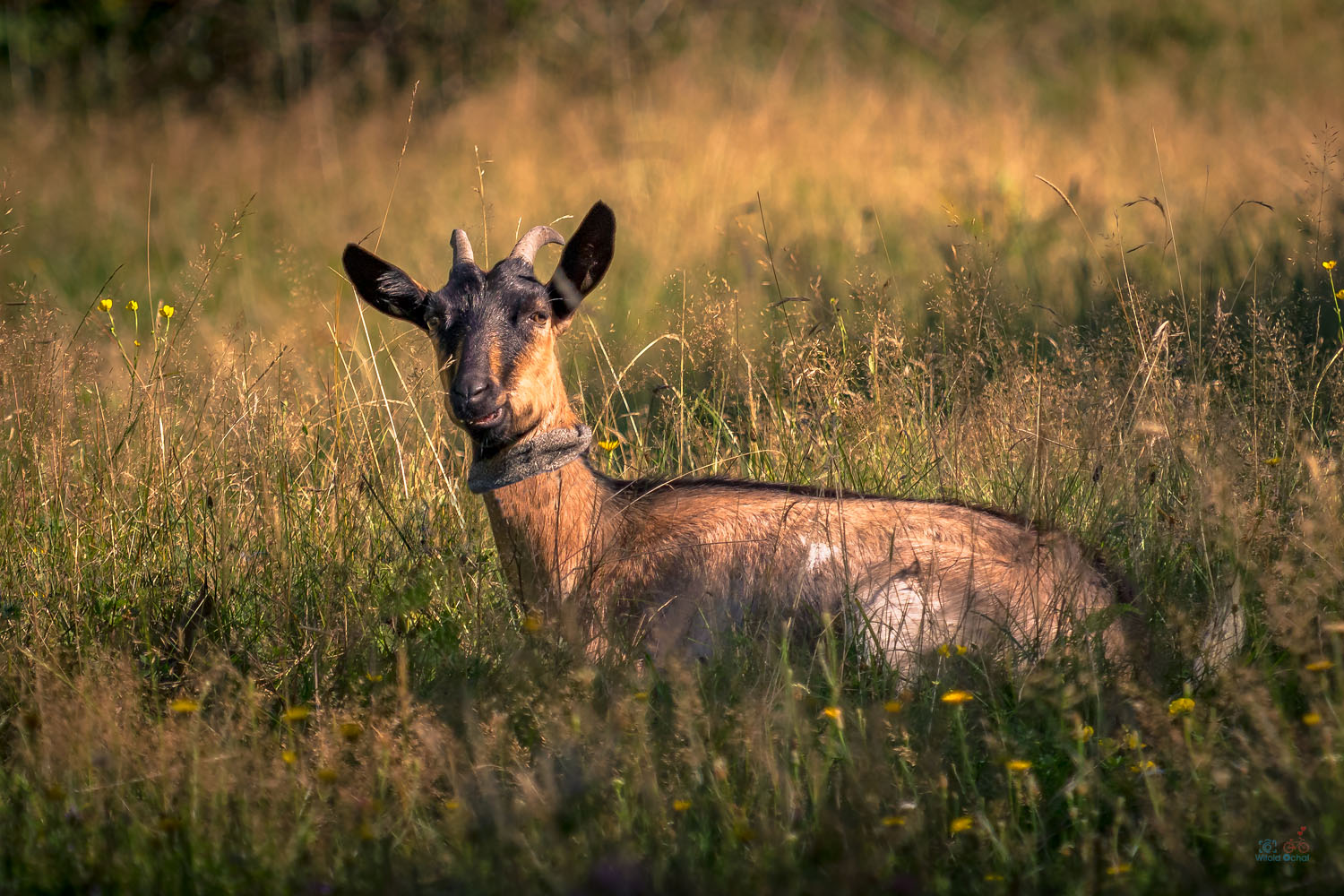 Zatrzymałem się, żeby coś zjeść. A tam za krzakami niezwykle wylyzowana koza. Spodobała mi się jej mina, zastanawiam się co ona mówi 🙂