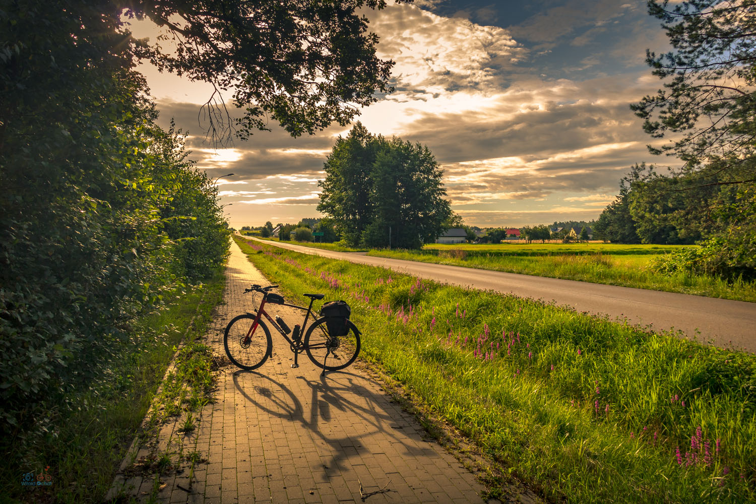 Zatrzymałem się, bo coś zjeść, kiedy akurat zza chmur wyszło słońce. Spodobała mi sie ta scena z rowerem i jego cieniem.
