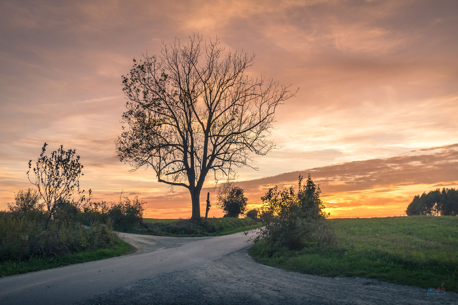 Wsiadłem zatem na roer i wróciłem tam po raz kolejny, aby uwiecznić na zdjęciach to wyjątkowe miejsce. Traf chciał, że mój kadr okrasiły dwie przejeżdżające akurat rowerzystki i przepiękny zachód słońca.