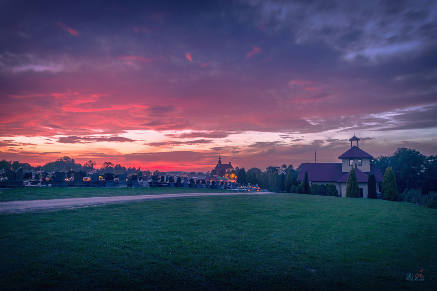 Ten wieczór zapamiętam na długo. Przepiękne kolory, najpierw oczywiście w ciepłych barwach, zaczeły się prawie godzinę przez zachodem słońca. Na koniec niebo na długie minuty stało się czerwone. Najpierw fotografowałem w polach, ale stwierdziłem, że ten mroczny klimat pasuje mi do cmentarza i tam się przeniosłem.