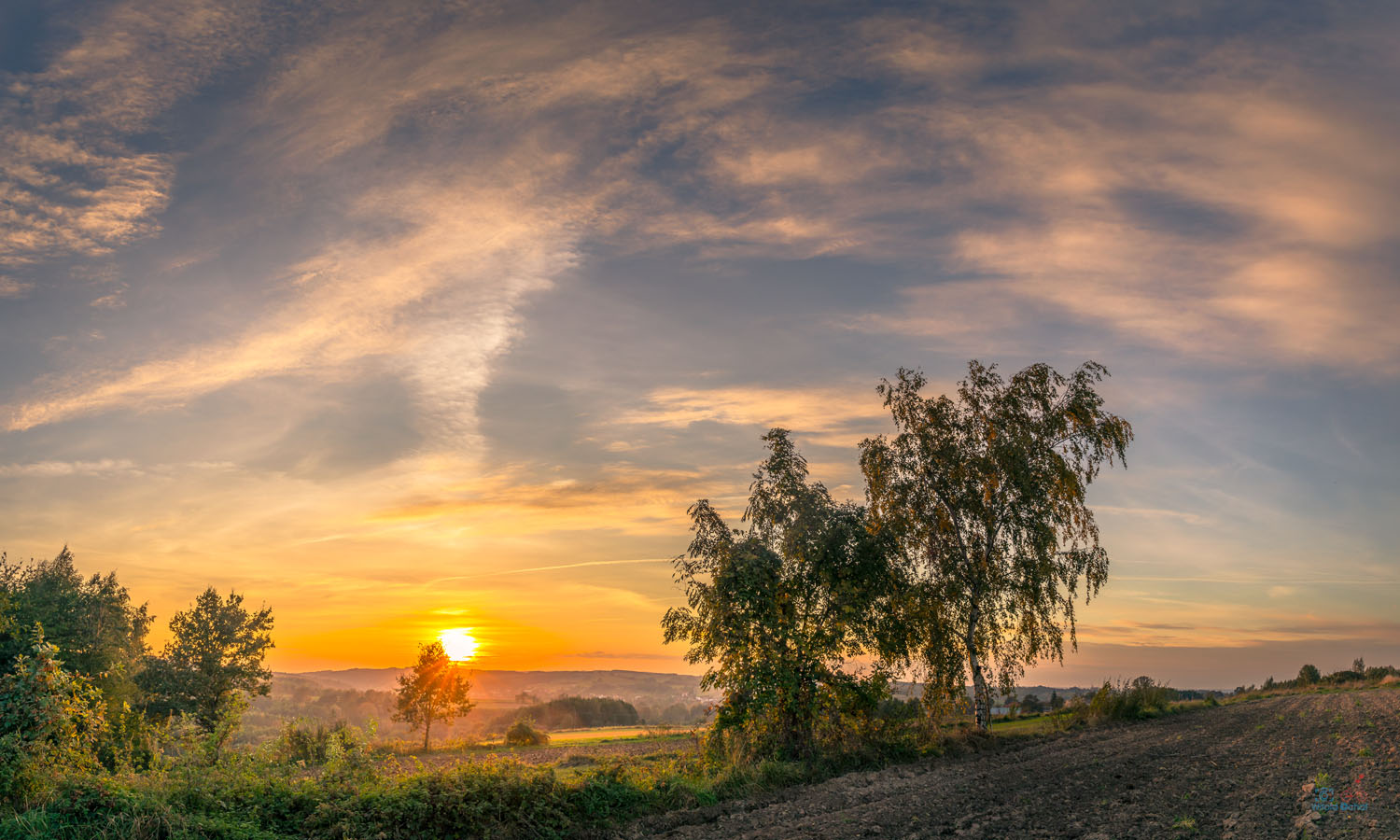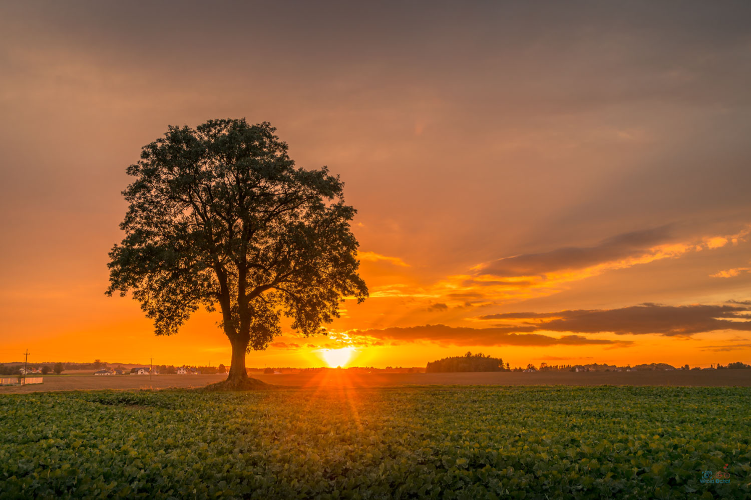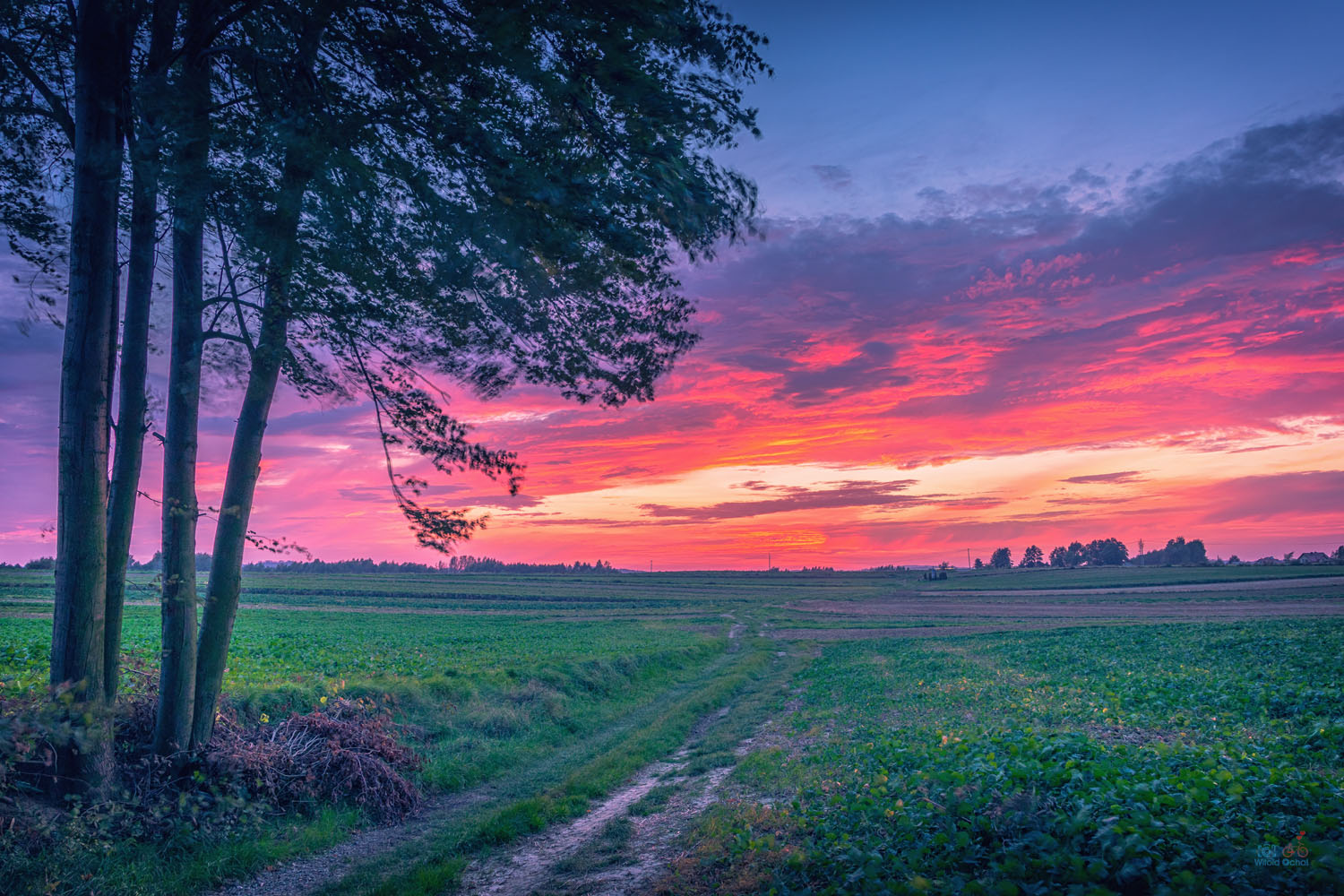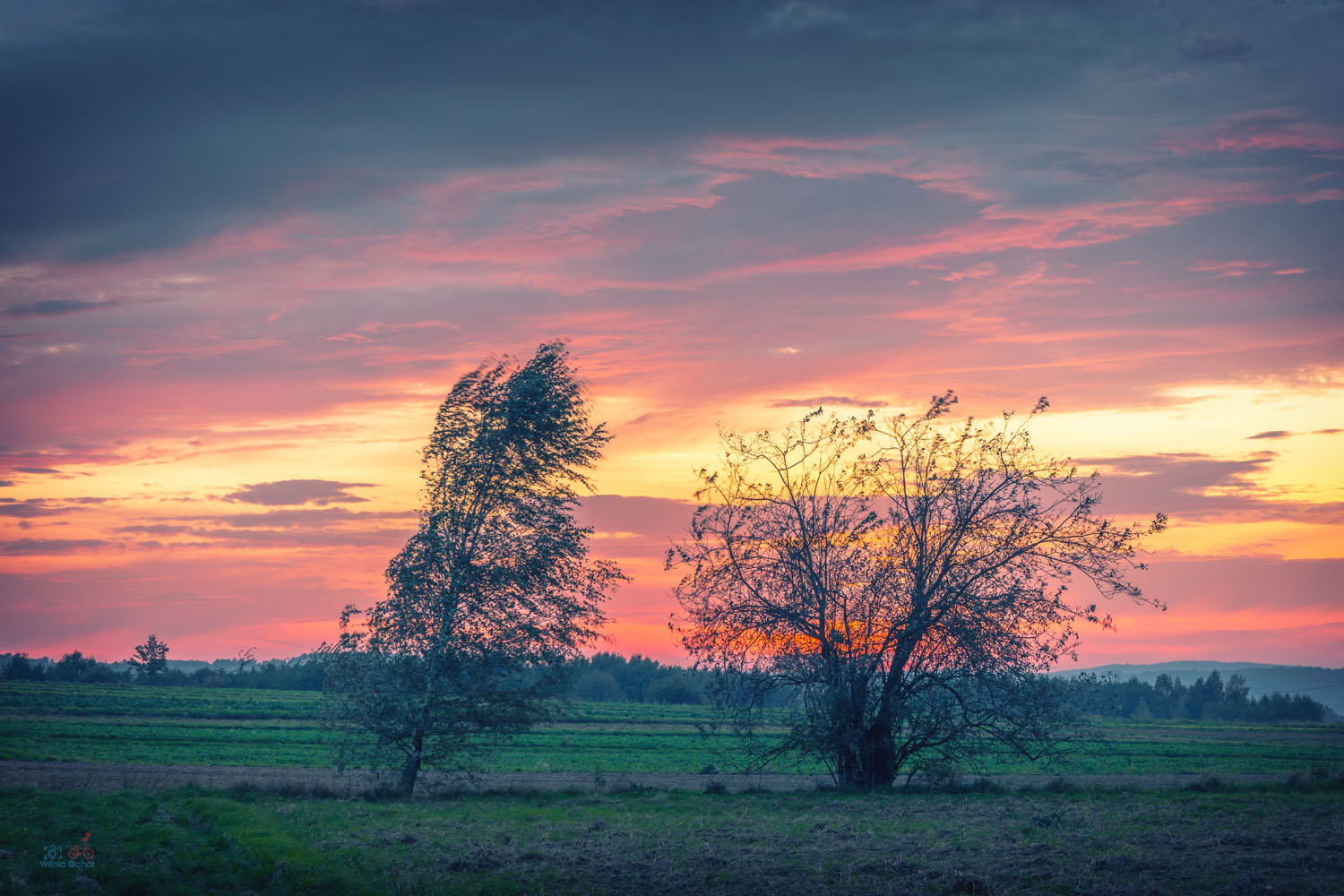 Tym razem zachód mnie zaskoczył. Wyglądnąłem spóźniony przez okno, a tam już zaczynało robić sie pięknie. Blisko domu mam kilka miejscówek i do jednej z nich dotarłem w kilka minut. Słońce właśnie dotykało horyzontu…