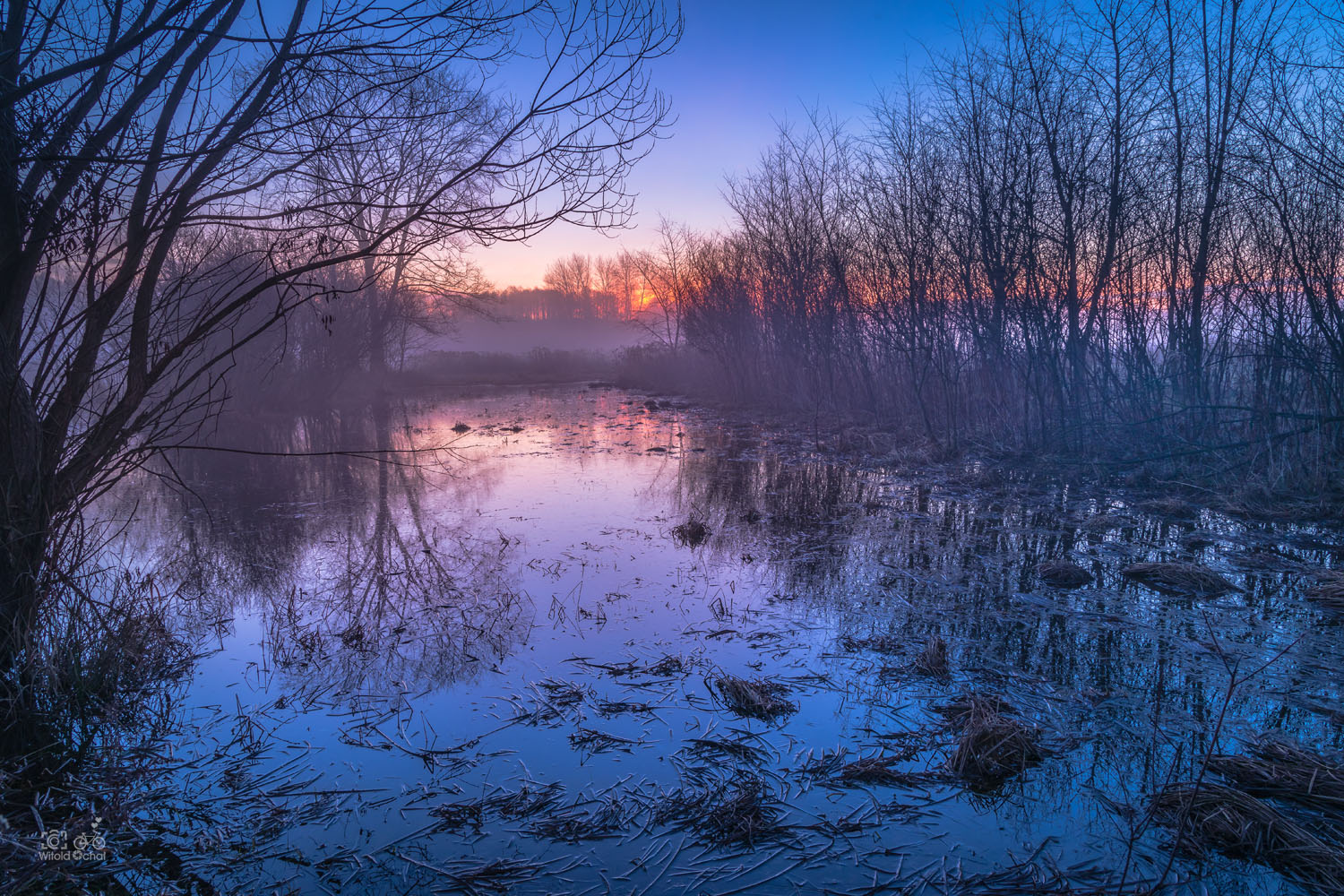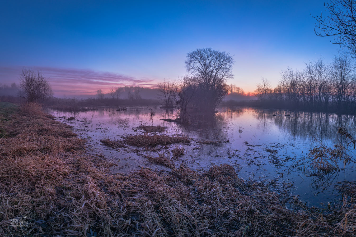 Po raz kolejny wracam do pamiętnego poranka sylwestrowego. Mróz i mgła jak już pisałem zaskoczyły mnie, bo kilka kilometrów wcześniej temparatura była trzy na plusie, a powietrze przejrzyste. Tu nad łąkami unosiła sie jednak mgiełka, a ręce marzły z zimna.