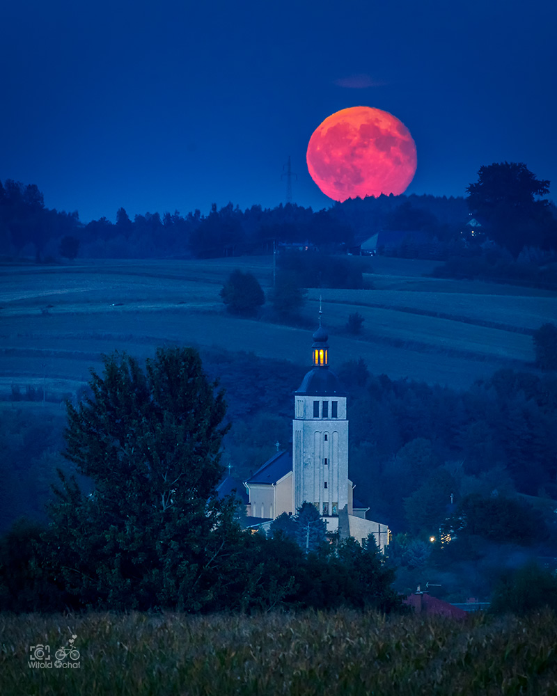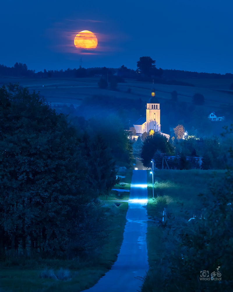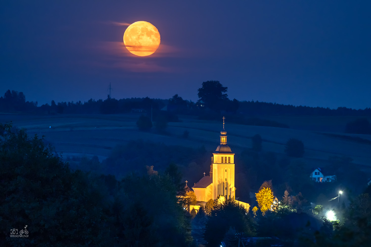 Wschodzący nad kościołem w Nockowej Księżyc, nie mógł mnie zawieźć. Fotografowałem go tam już co prawda w poprzednich latach, ale tym razem widok był naprawdę oszałamiający. Zresztą co ja wypisuję, zawsze podczas wschodu Księżyca jest niesamowicie i tajemniczo!