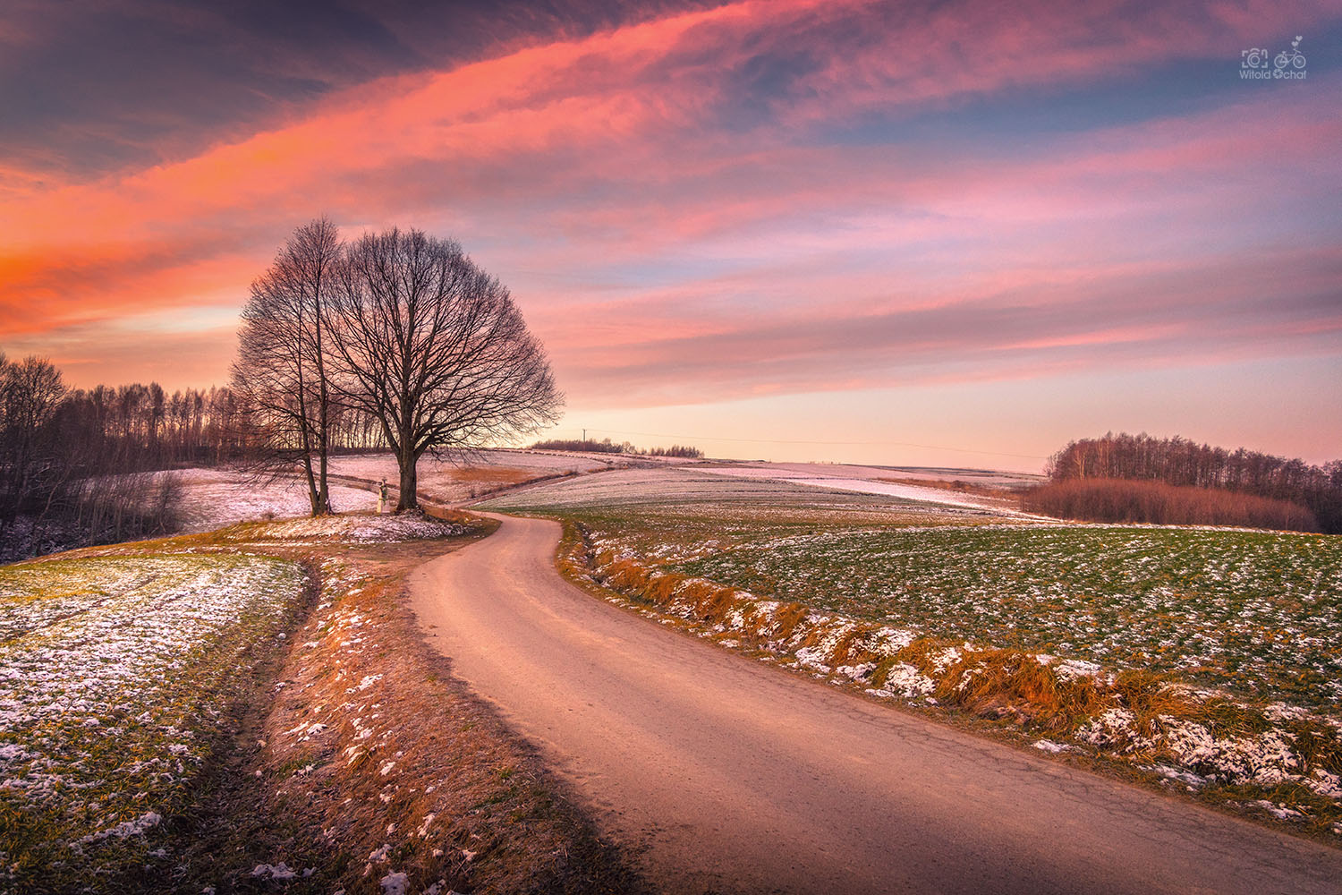 Spędziłem przy tych drzewkach może z kilkanaście minut. Kolory w tym czasie zmieniały się błyskawicznie. To był czas, kiedy słońce przebijało się przez najgęstsze warstwy atmosfery malując chmury coraz to inną farbą.