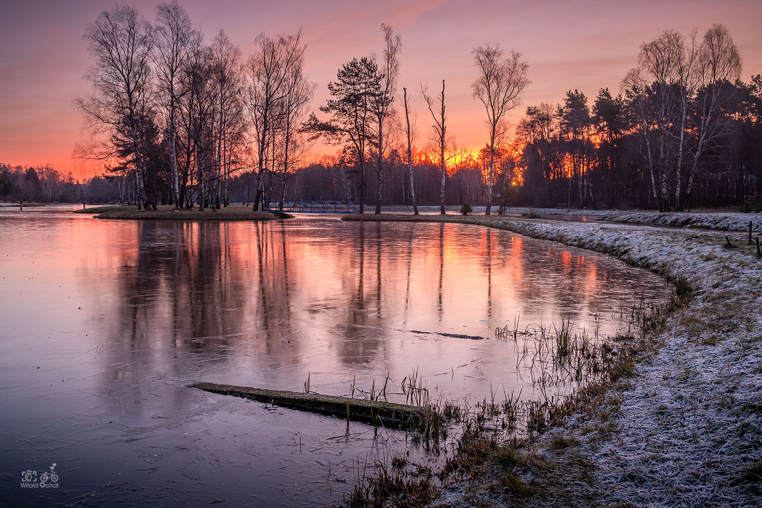 Fajnie, że te kilka wspaniałych warunków do fotografowania w styczniu, trafiło się w dni wolne od pracy. Pierwszego stycznia przed świtem zjawiłem się nad zalewem w Kamionce. Do wschodu słońca było jeszcze pond pół godziny.