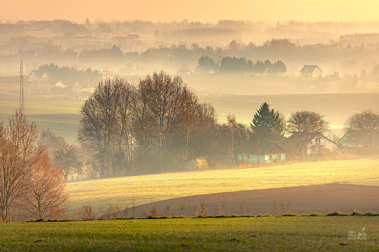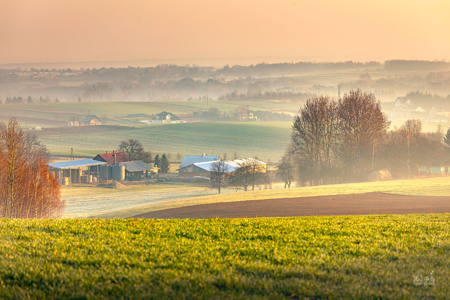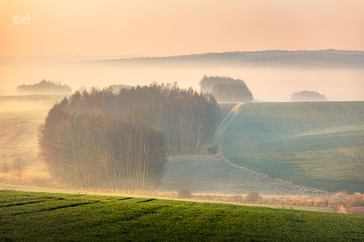 Oniemiewam. Mgły snujące się leniwie nad polami, niziutkie słońce dające cudne, miękkie światło, cisza i ziąb – ale taki przyjemny. Wspaniałe warunki, cieszę się jak dziecko w Legolandzie, a może i bardziej.