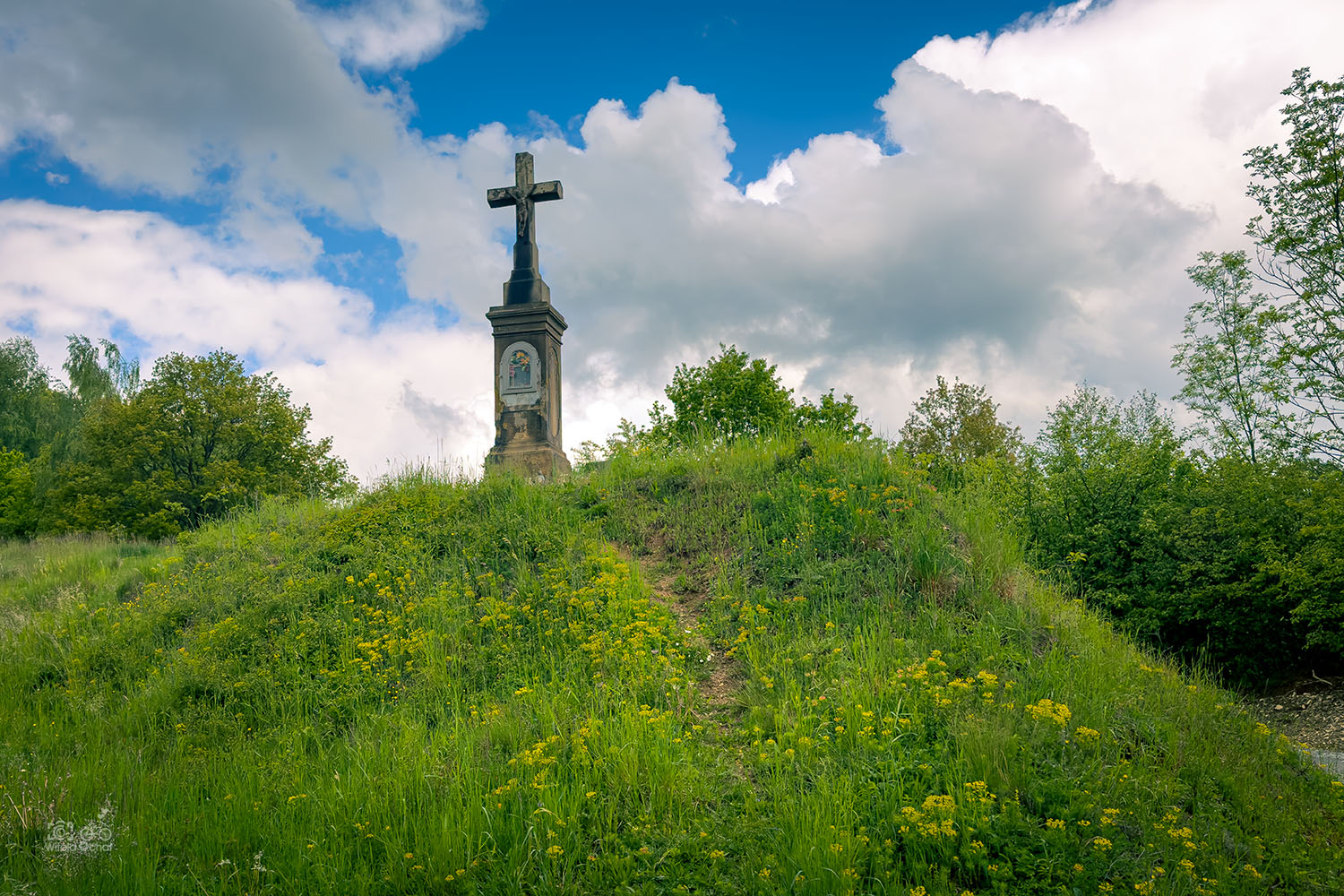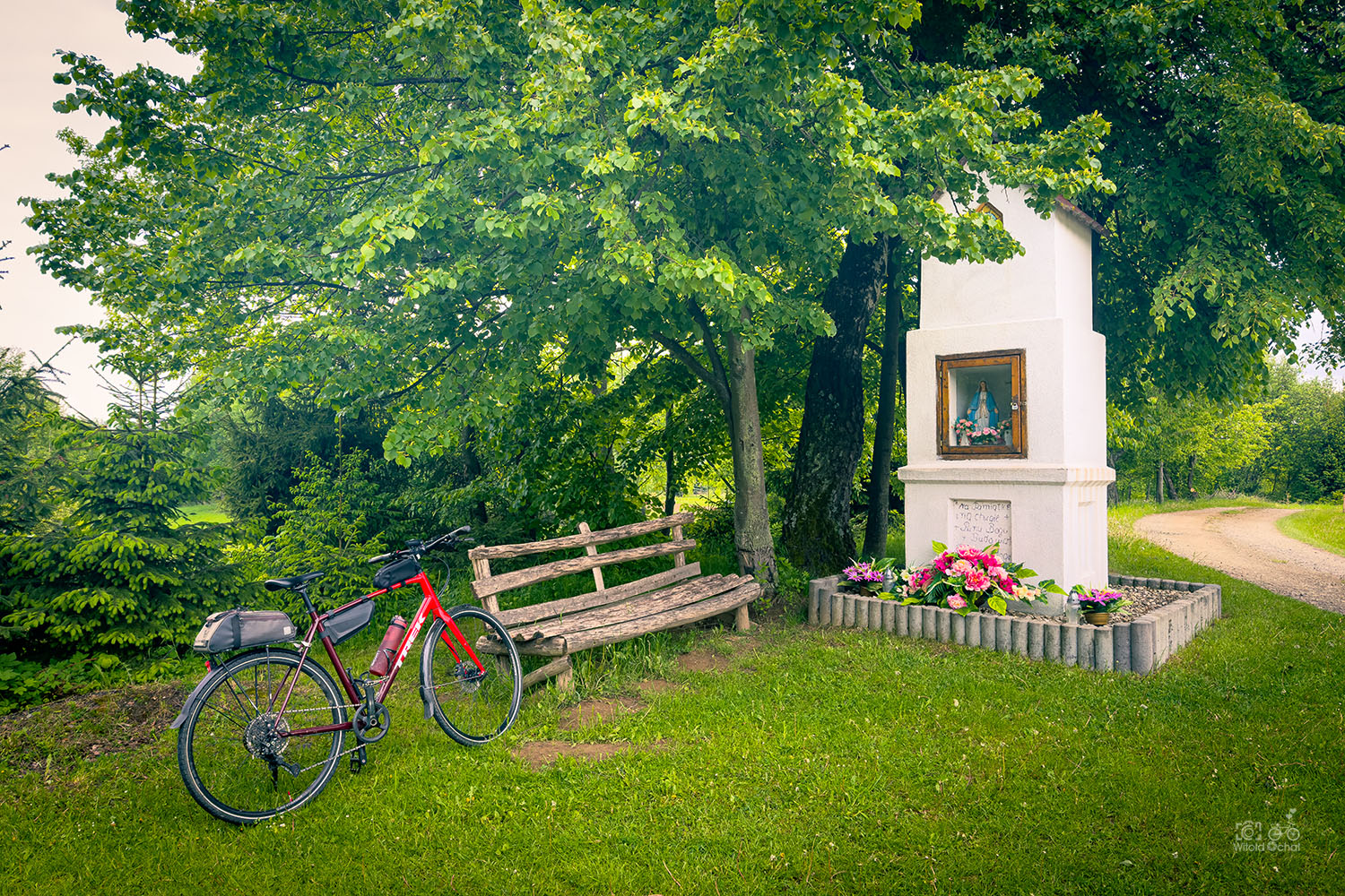 W związku z niepewną pogodą cisnąłem na korbę ile sił w nogach i mało fotografowałem. Najciekawsze miejscówki to oczywiście Aleja Grabowa i park w Wiśniowej oraz cerkiew w Rzepniku. Po drodze zrobiłem sobie przerwę przy urokliwej kapliczce i obok prywatnego zamku 🙂