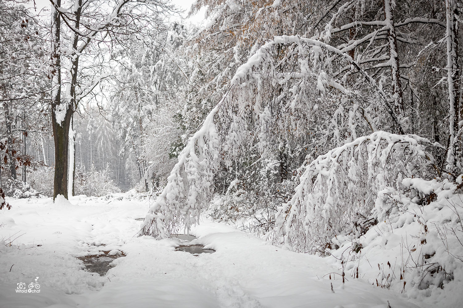 Pozwólcie, że wspomnę jeszcze o zimowym incydencie sprzed półtora tygodnia. Podczas trzeciego dnia opadów wybrałem się na spacer po lesie i zastałem tam prawdziwie bajkowy klimat. Niestety ciężki śnieg połamał wiele drzew i obawiam się, że straty w lasach będą spore.