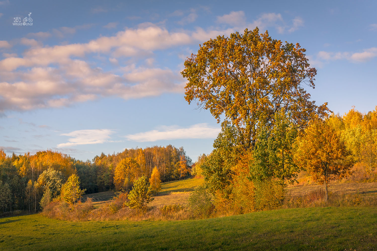 Pozwolę sobie wrócić wspomnieniem do końcówki października i mojego spaceru po niezwykle malowniczych terenach Pogórza Strzyżowskiego. Wyczekane wtedy chwile ze słońcem przyniosły prawdziwy wybuch barw, które w tym świetle stawały się jeszcze bardziej wyraziste.