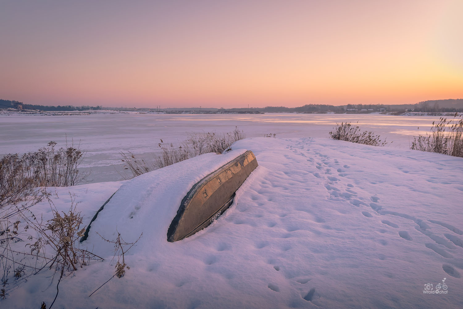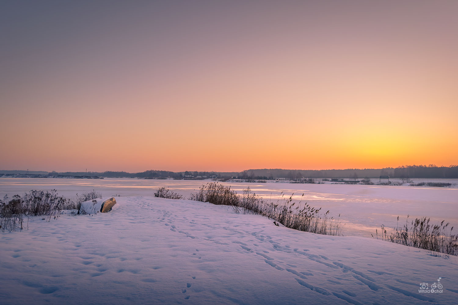 Dzień zacząłem nad pobliskim zalewem, podziwiając wschód słońca i przebierając nóżkami, bo w połączeniu z wiatrem ziąb był przeszywający. Kilka zdjęć i fruu — na spacer po lesie.