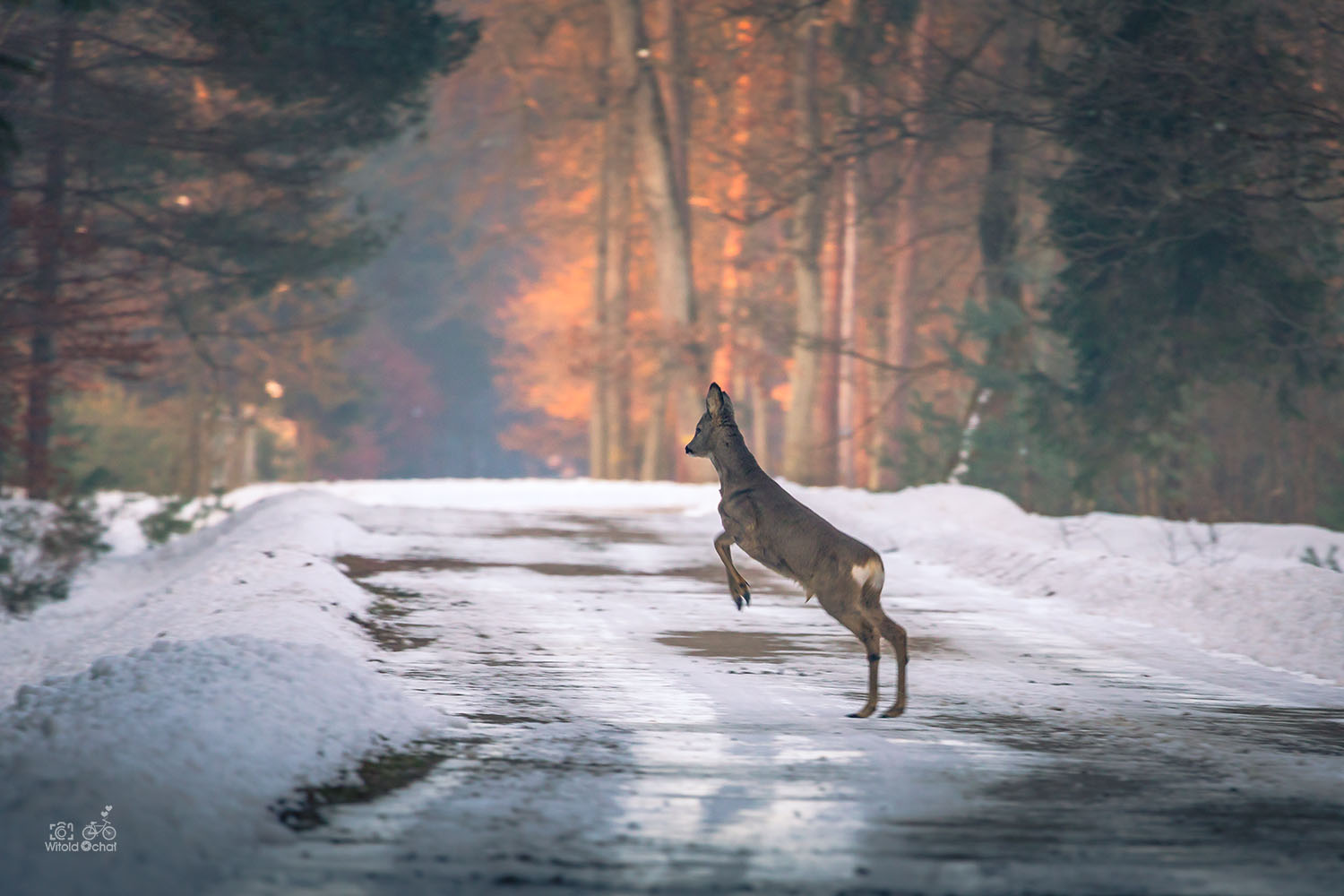 Tup tup, skrzyp, skrzyp. Bardziej to drugie. Skrzypienie śniegu pod moimi stopami skutecznie ostrzegało zwierzynę, zanim znalazła się w zasięgu mojego wzroku. Jedna sarenka tylko się zagapiła i zwiała w ostatnim momencie.