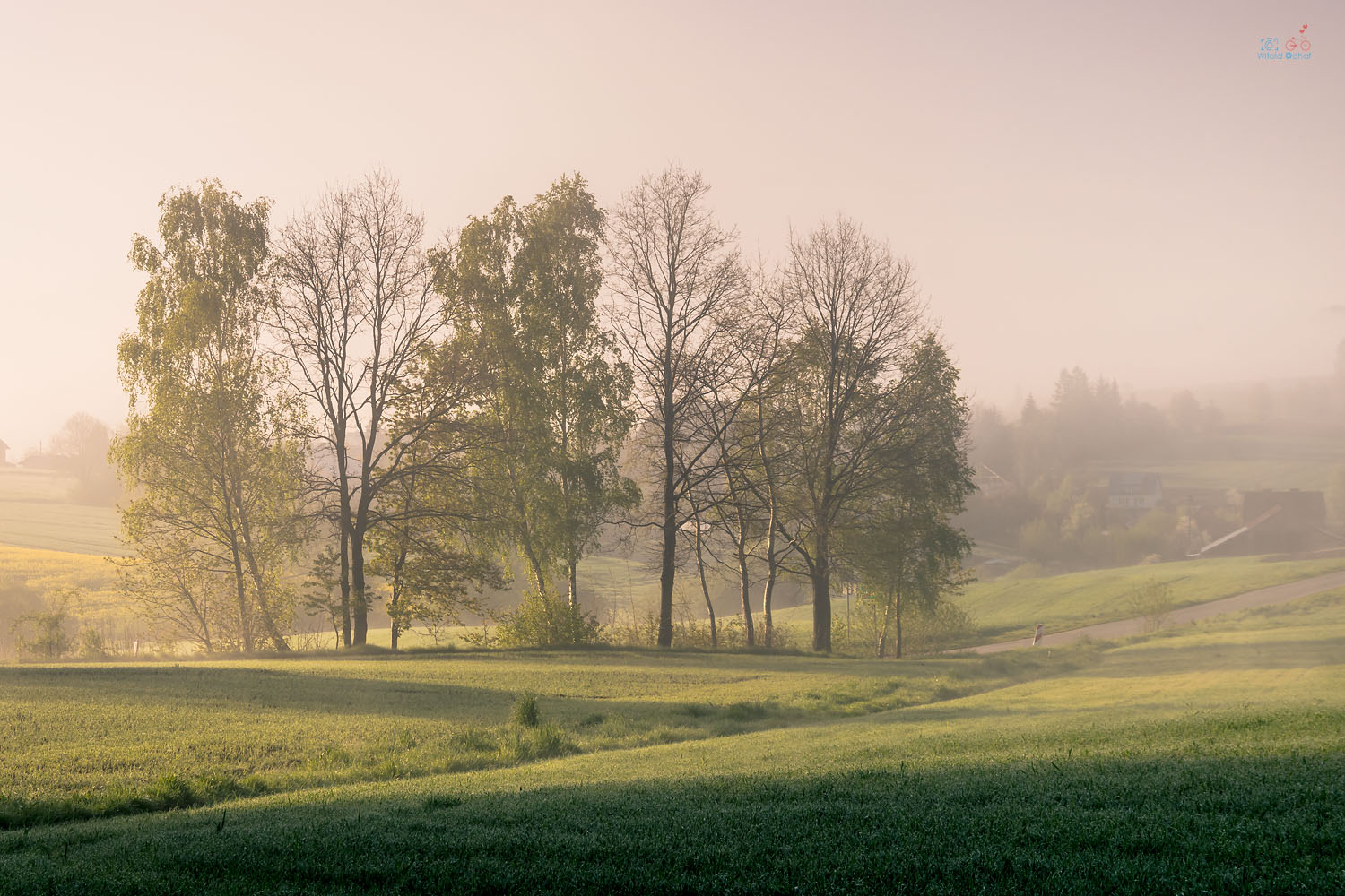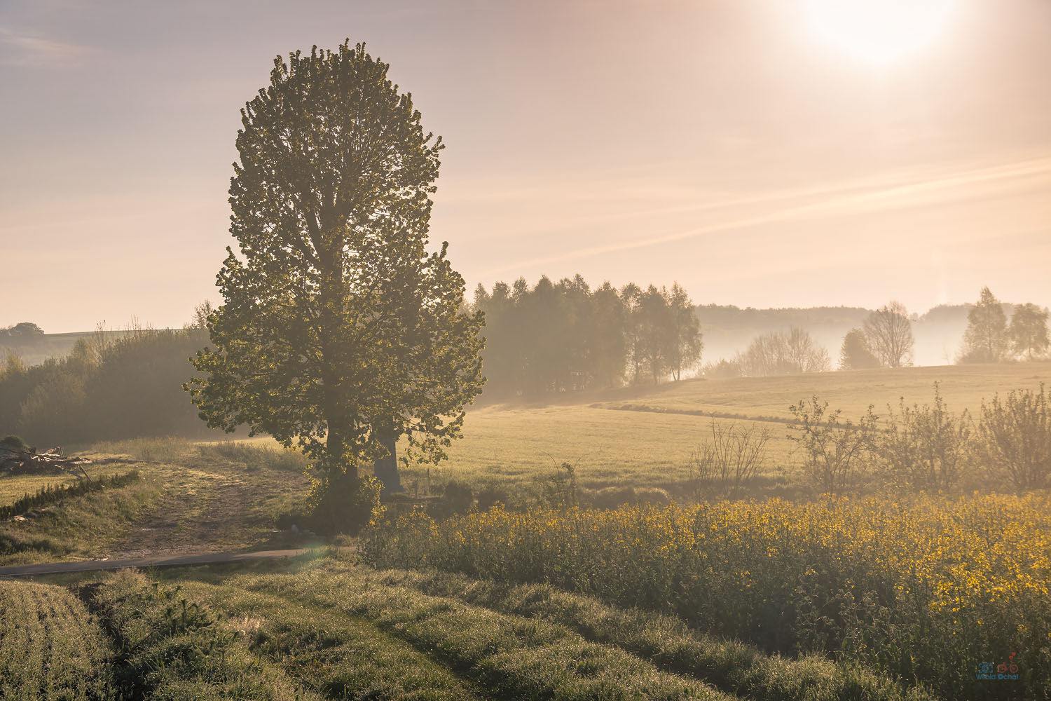 Maj 2023 roku. Wstałem przed świtem, aby pojechać na rower. Było bardzo zimno, ale wiedziałem, że później zrobi się cieplej, jak to bywa w maju. Póki co jechałem we mgle i co rusz zatrzymywałem się na fotografowanie. No bo jak nie robić zdjęć w takich warunkach? Mgła, przedzierające się przez nią słońce. I ta przyjemność z jazdy, porannej ciszy i spokoju.