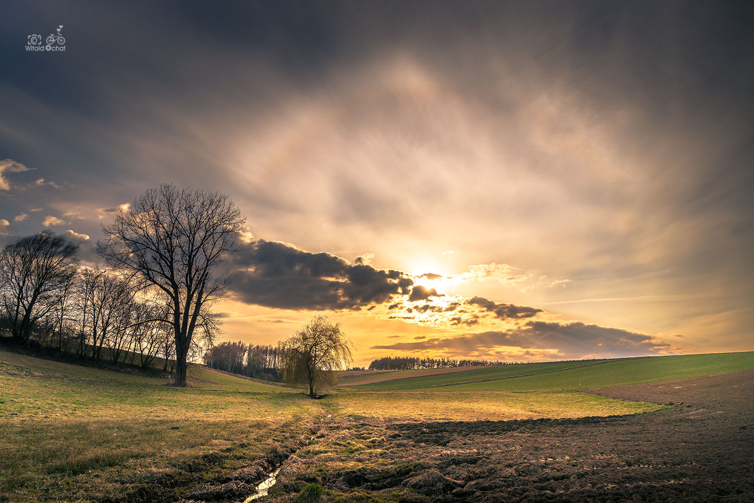 Tak, to było halo słoneczne. Nie tak bardzo wyraźne, ale okrąg i poświata wokół naszej gwiazdy były jak najbardziej widoczne. Popołudnie chłodne i wietrzne, ale chłop nie usiedział w domu i dobrze, bo przegapiłby to piękne zjawisko optyczne.