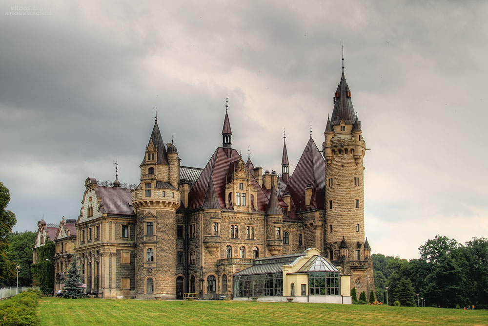 Zamek w Mosznej w woj. opolskim słynie z dużej ilości wieżyczek. Sam nie liczyłem, a źródła różnie podają. W każdym razie jest ich kilkadziesiąt. Niektórzy mawiają o zamku, że jest spełnieniem wizji pijanego dekoratora. Cokolwiek wypił, wciągnął, czy powąchał, efekt wygląda imponująco.
