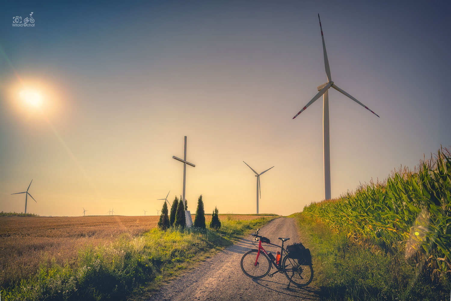 Lubię pojechać na fermę wiatrową. Jest ona oddalona ode mnie klikadziesiąt kilometrów, ale od czasu do czasu wybiorę się tam rowerem. Położona z dala od zabudowań na ogromnym terenie pól uprawnych.