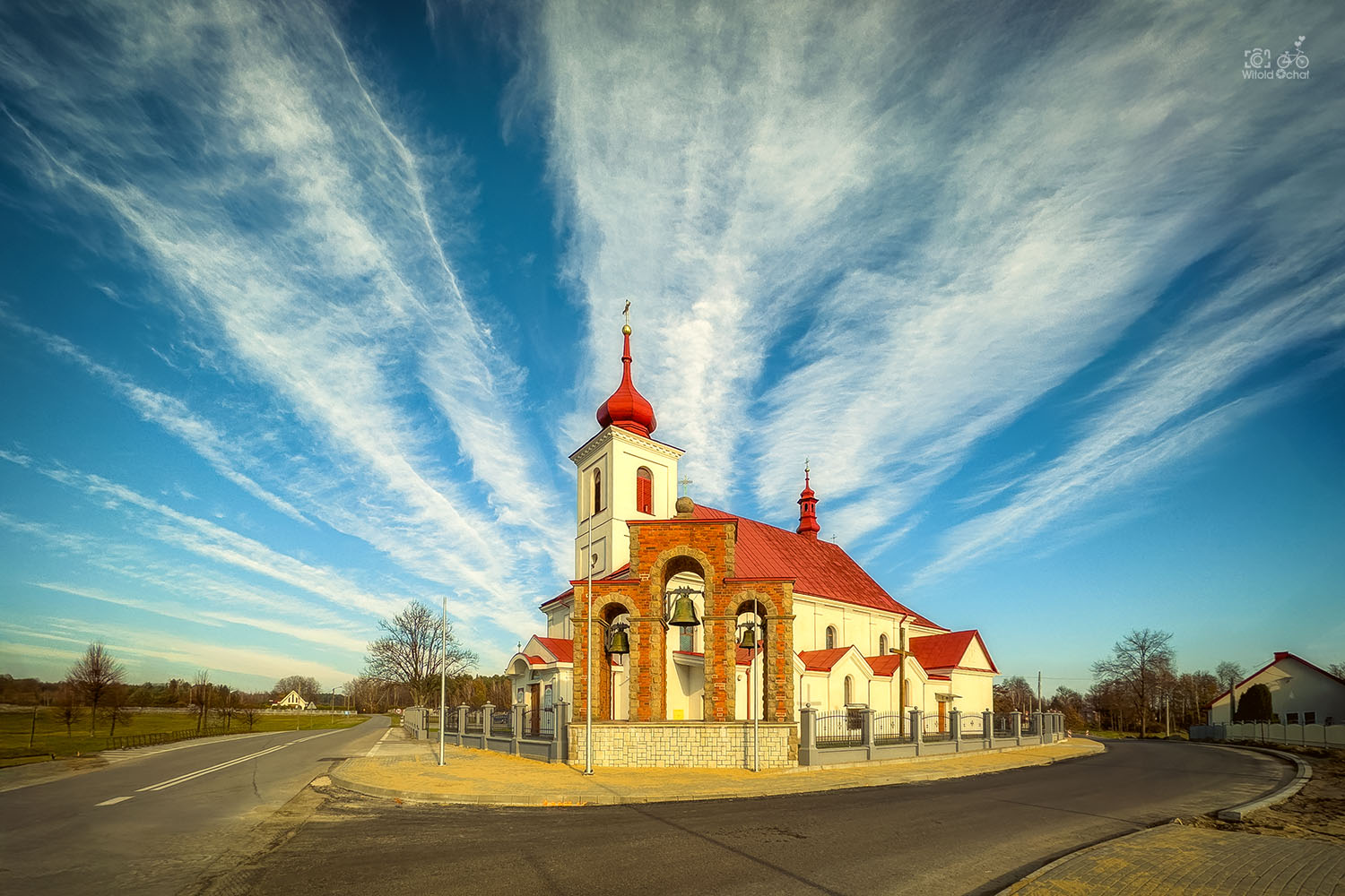 Obłoki mgły podnosiły się powoli. Zaczęło się przejaśniać około południa, a ostatnie wisiały jeszcze przez następne kilka godzin. Moją uwagę zwrócił ten podświetlony niskim już słońcem. Akurat jadąc rowerem, byłem w okolicy kościoła w Czarnej Sędziszowskiej. To ten, który ostatnio również fotografowałem, ale z drugiej strony i z innymi równie widowiskowymi chmurami.