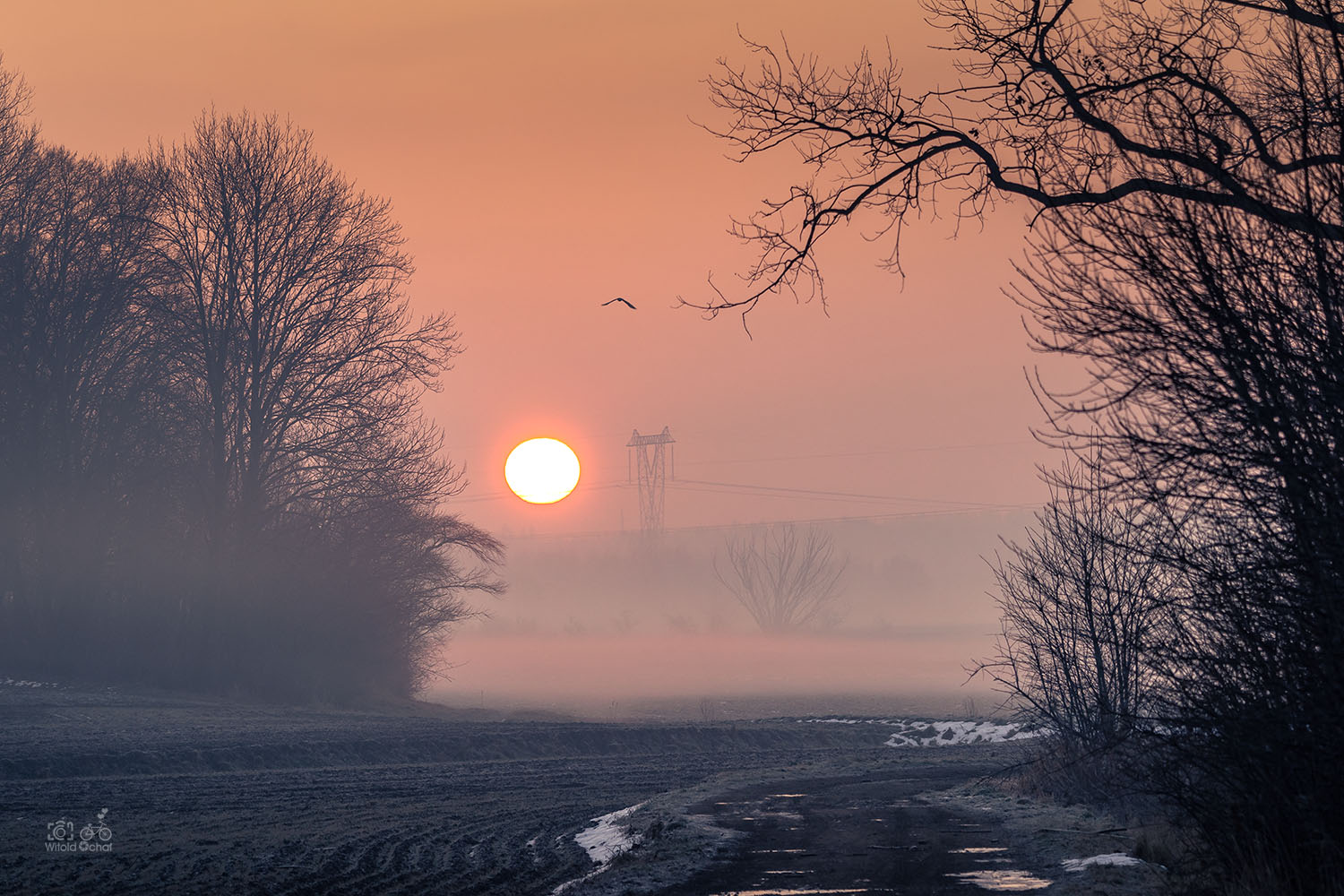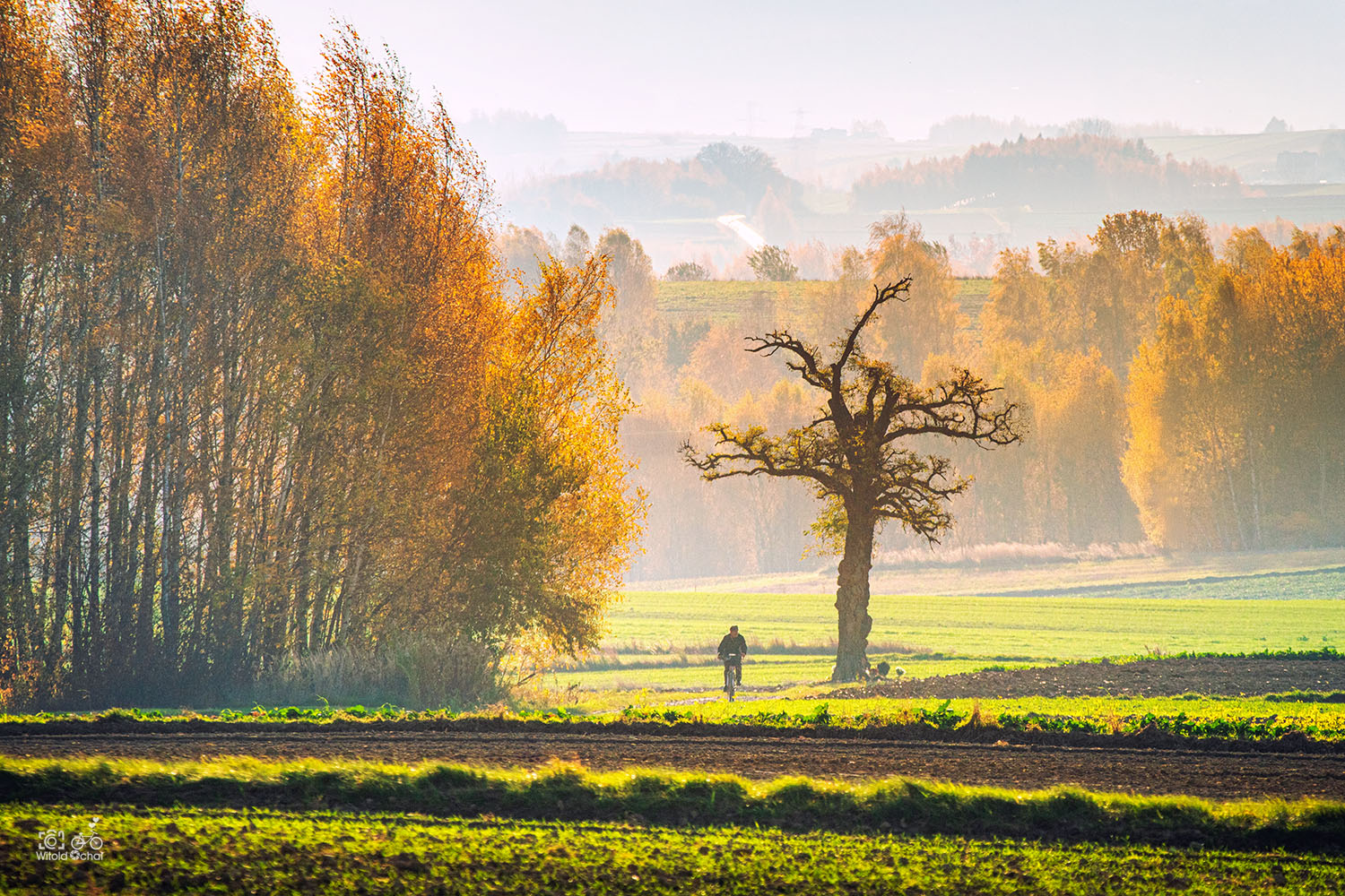 Słońce zaczęło wyłaniać się zza mgły. Podążałem niezbyt pośpiesznie polną drogą wśród rozległych pól. To tę okolicę wybrałem na dzisiejszy plener i to był strzał w dziesiątkę. O dziwo o tak wczesnej porze w niedzielę, nie byłem na tym pustkowiu sam.