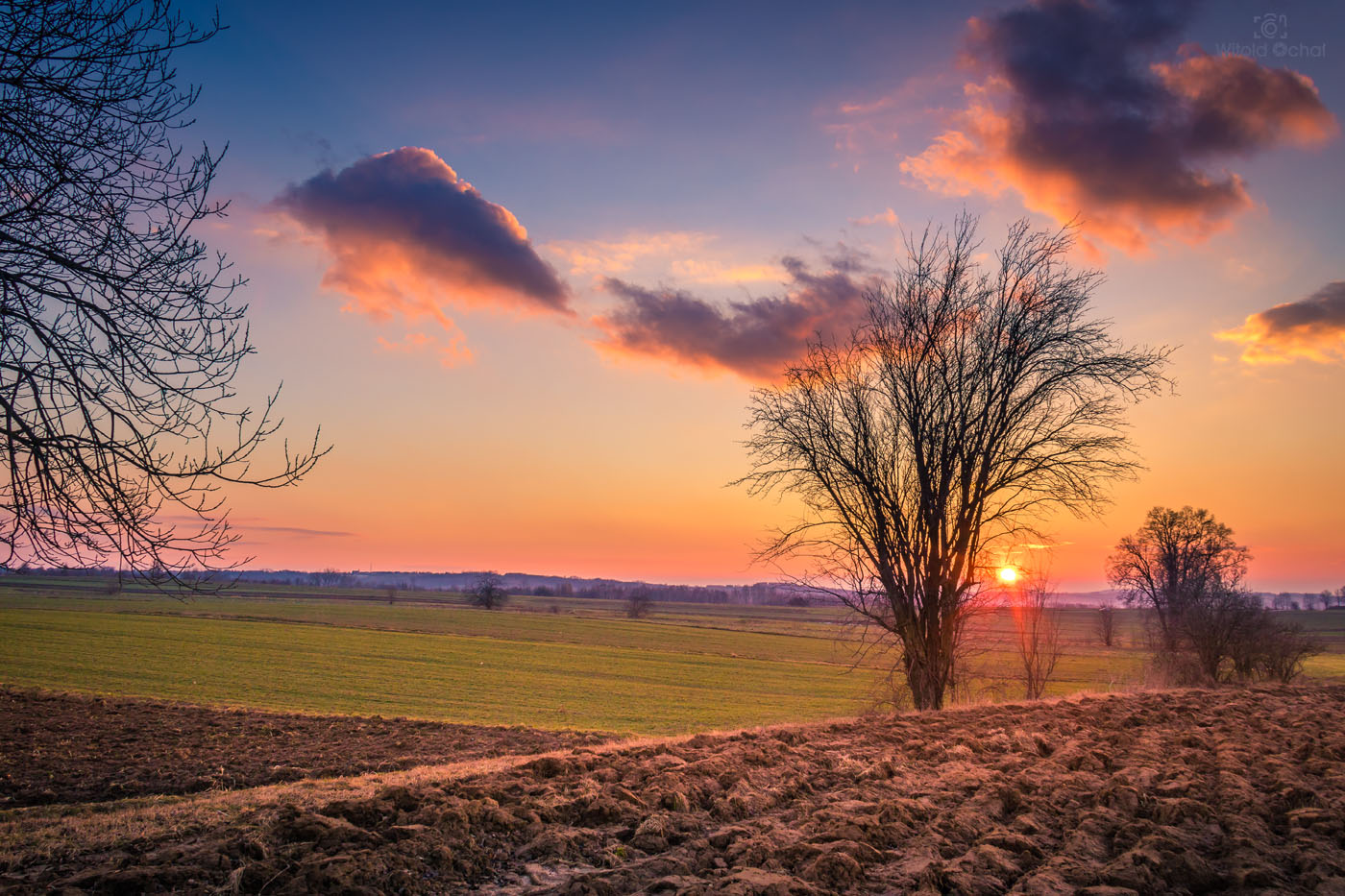 Ostatnie zdjęcie zrobiłem na szerokiej ogniskowej, aby pokazać ten niesamowity kontrast wściekle granatowego nieba i oświetlonego odrobiną słońca pola.
