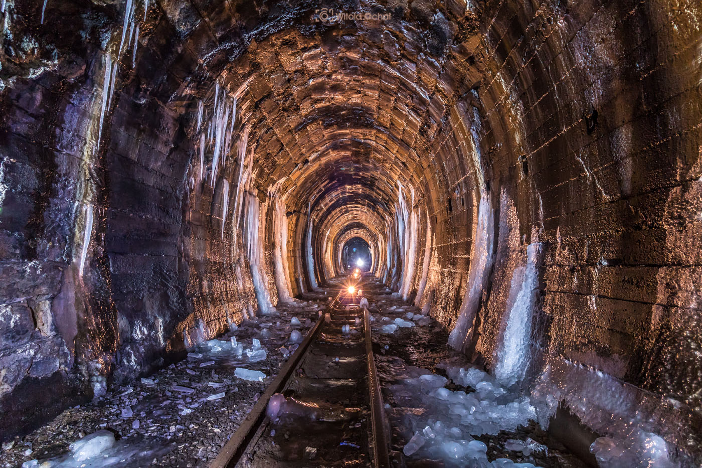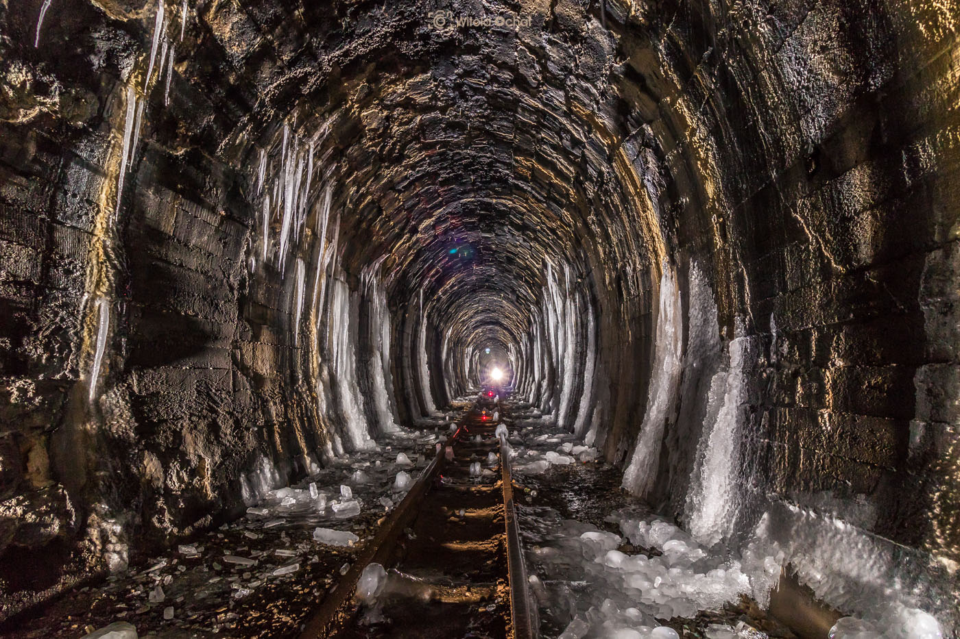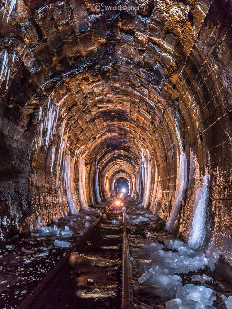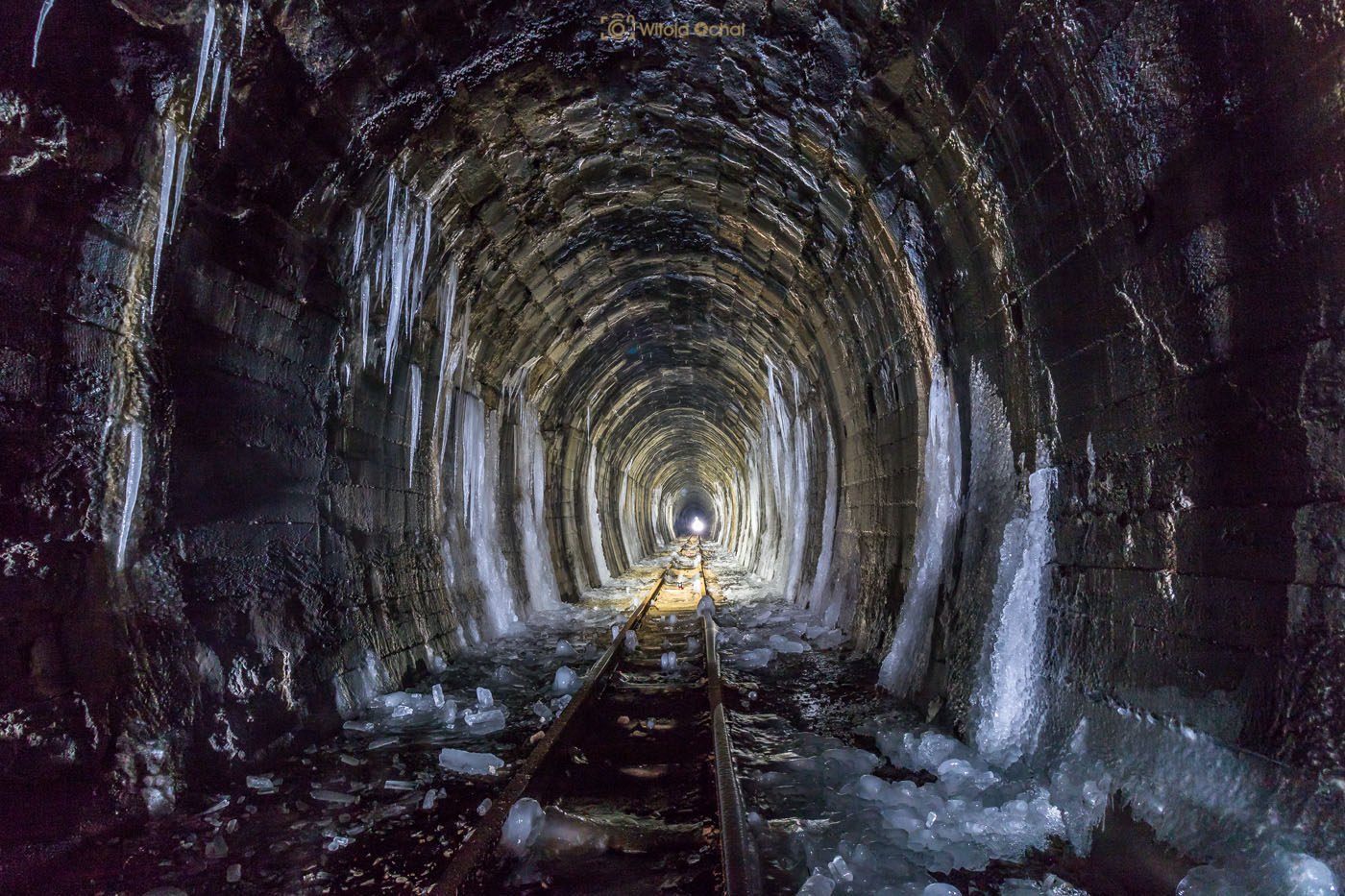 Bywałem tam już dwukrotnie (w 2017 i 2018 r). W 2017 sople były wyjątkowo obfite, natomiast rok później były tylko biedasople… Po dwóch latach przerwy mamy prawdziwą zimę, i dziś postanowiłem sprawdzić co tam słychać w tunelu. Nie liczyłem na wiele, ale kiedy wszedłem do środka i zobaczyłem te lodowe rzeźby oniemiałem. Znowu się pojawiły! Powstało wiele zdjęć, a tutaj prezentuję cztery moje ulubione z różnymi wersjami oświetlenia.