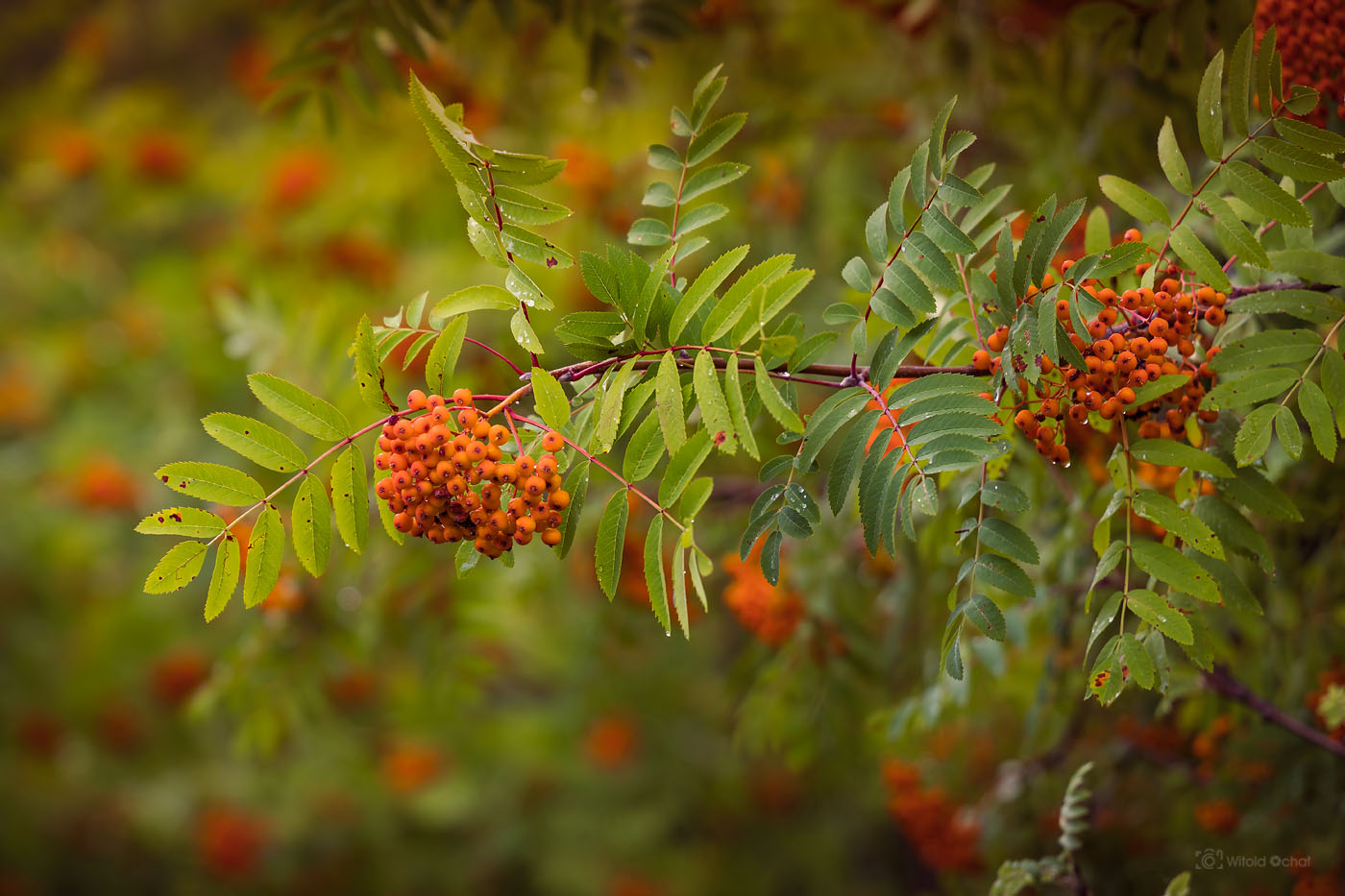 Pierwsza dekada lipca, to czas, gdy zaczyna dojrzewać jarzębina. Mogę się mylić, ale wydaje mi się, że kiedy byłem dzieckiem, to dojrzewala ona dopiero w sierpniu… Mniejsza z tym, ważne że dojrzewająca jarzębina przepięknie zdobi krajobraz. Ja mam tu w okolicy miejscówkę, gdzie rośnie obok siebie kilkanaście drzewek jarzębiny. Przepieknie to wygląda, zwłaszcza przy miękkim wieczornym słońcu.