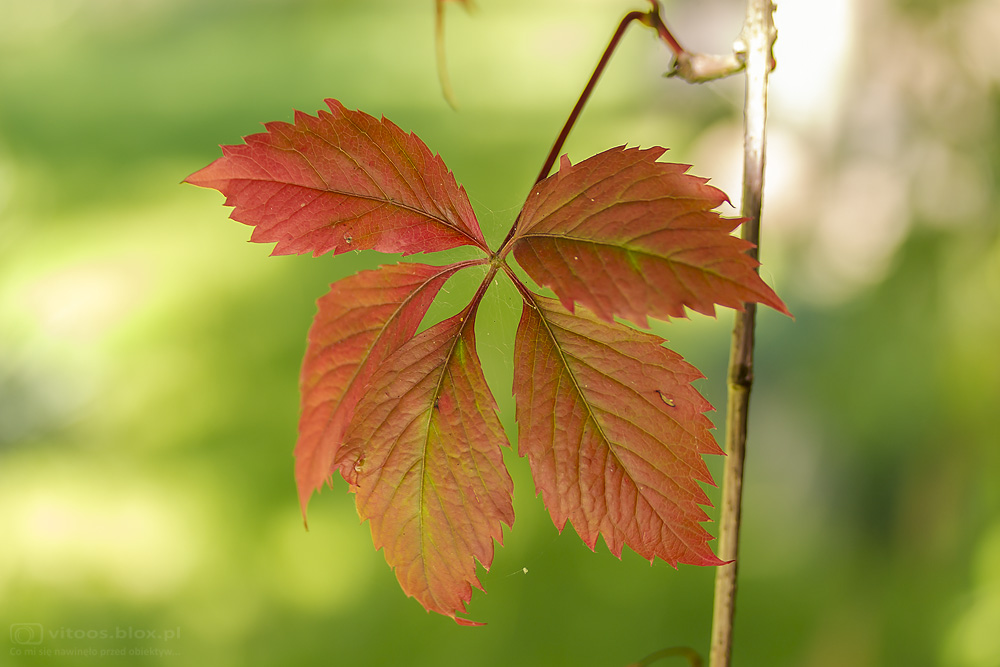 Na początek września zdjęcie, które zrobiłem kilka dni temu. Jeden liść na winobluszczu przybrał już jesienne kolory. Niech to zdjęcie będzie nadzieję na piękną złotą polską jesień.