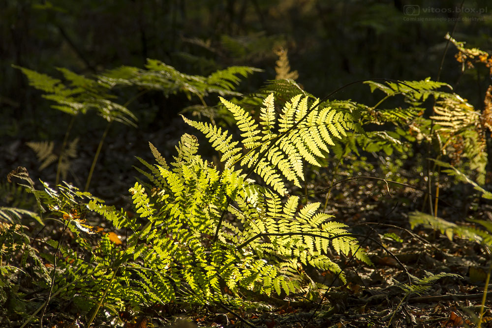 Miękkie, wieczorne, przebijające między gałęziami światło pomaga wynajdywać niewielkie i malownicze szczegóły z leśnego runa i poszycia.