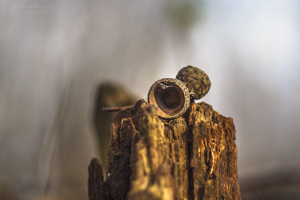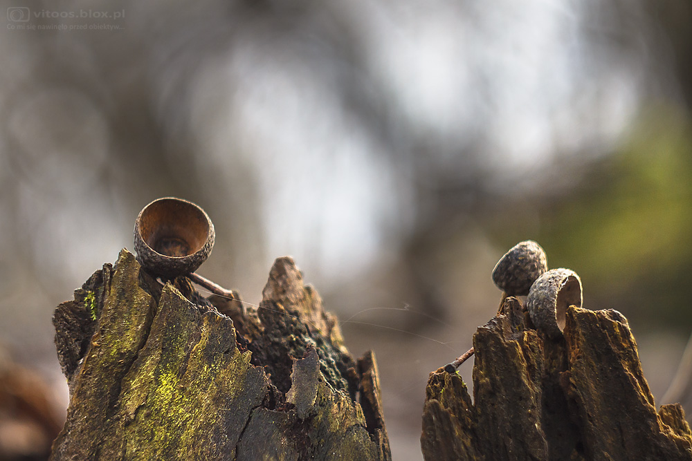 Spadają te żołędzie gdzie bądź i gubią te swoje czapeczki.
