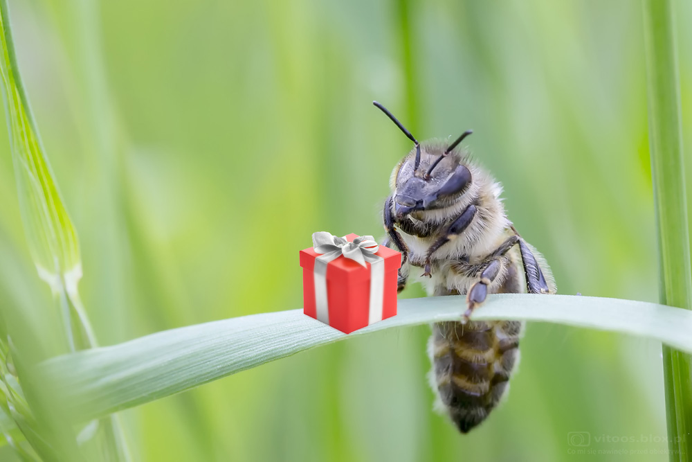 Nie tylko ludzie obdarowują się prezentami. Ta mała pszczółka również dostała swój mały prezent pod choinkę.
