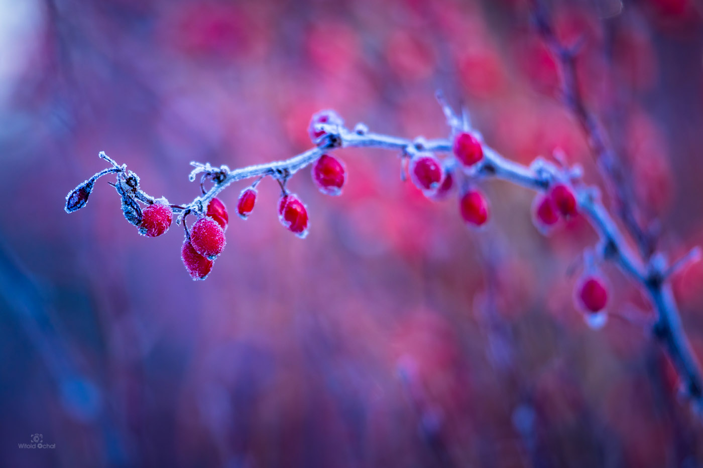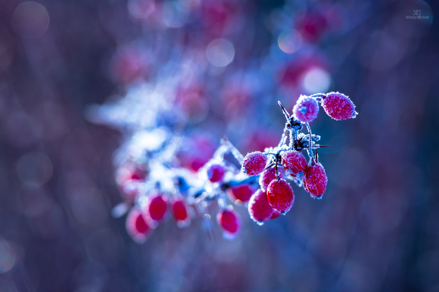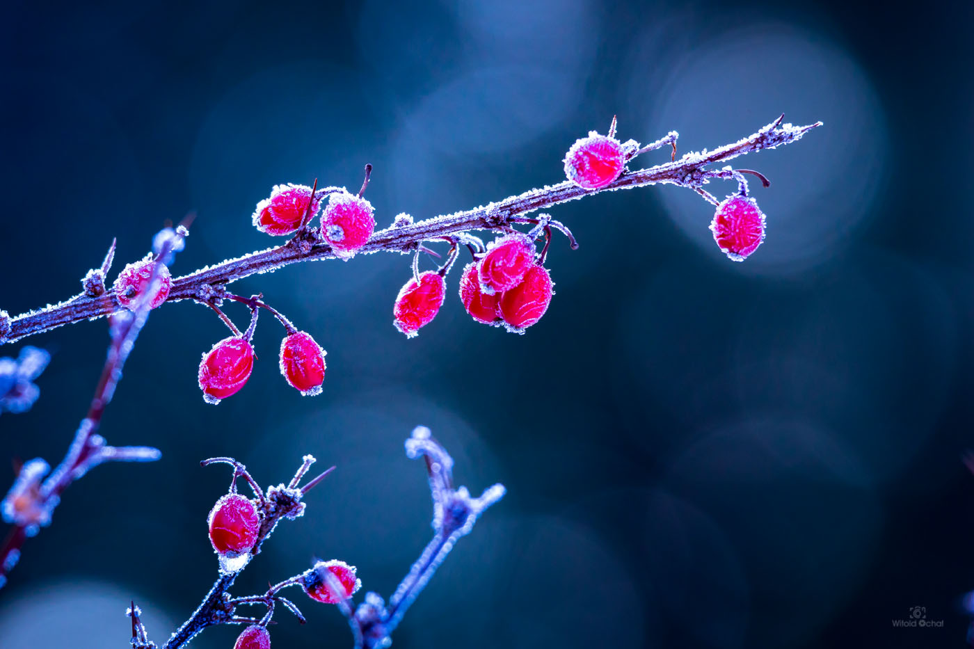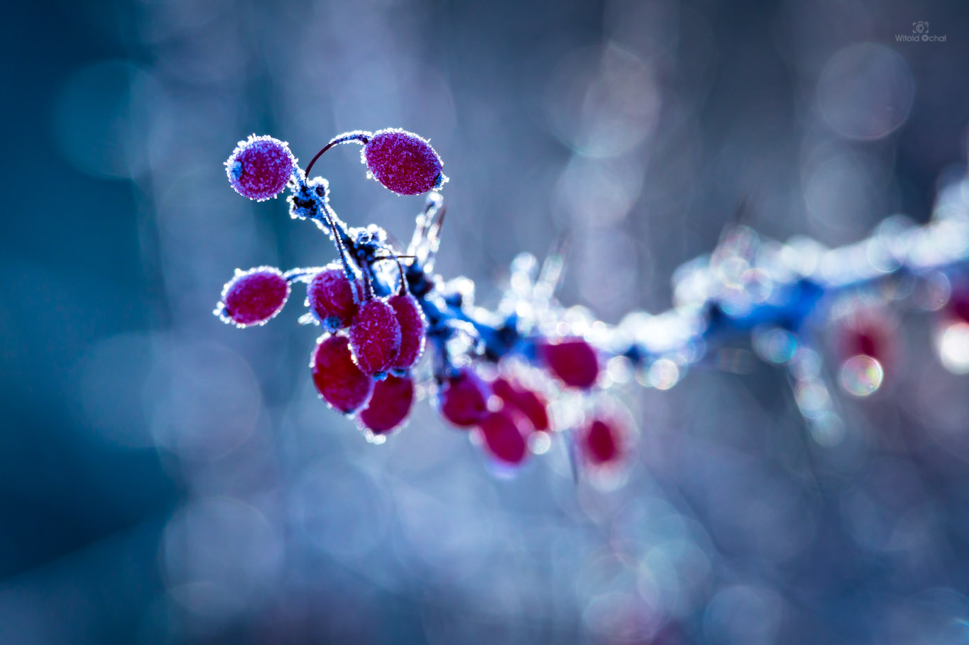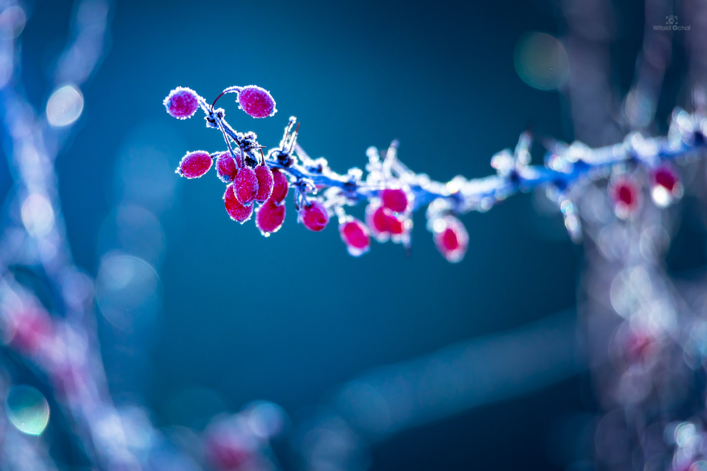 Odrobina mgły i mrozu polukrowała berberysy w moim ogródku. Wyglądały całkiem apetycznie, ale ptaszki za berberys zabierają się na samym końcu. Teraz delektują się owocami winobluszczu, na którym znajduje się całkiem sporo czarnych owoców, pewnie o wiele smaczniejszych, choć nie tak atrakcyjnych wizualnie jak berberysowe koraliki.