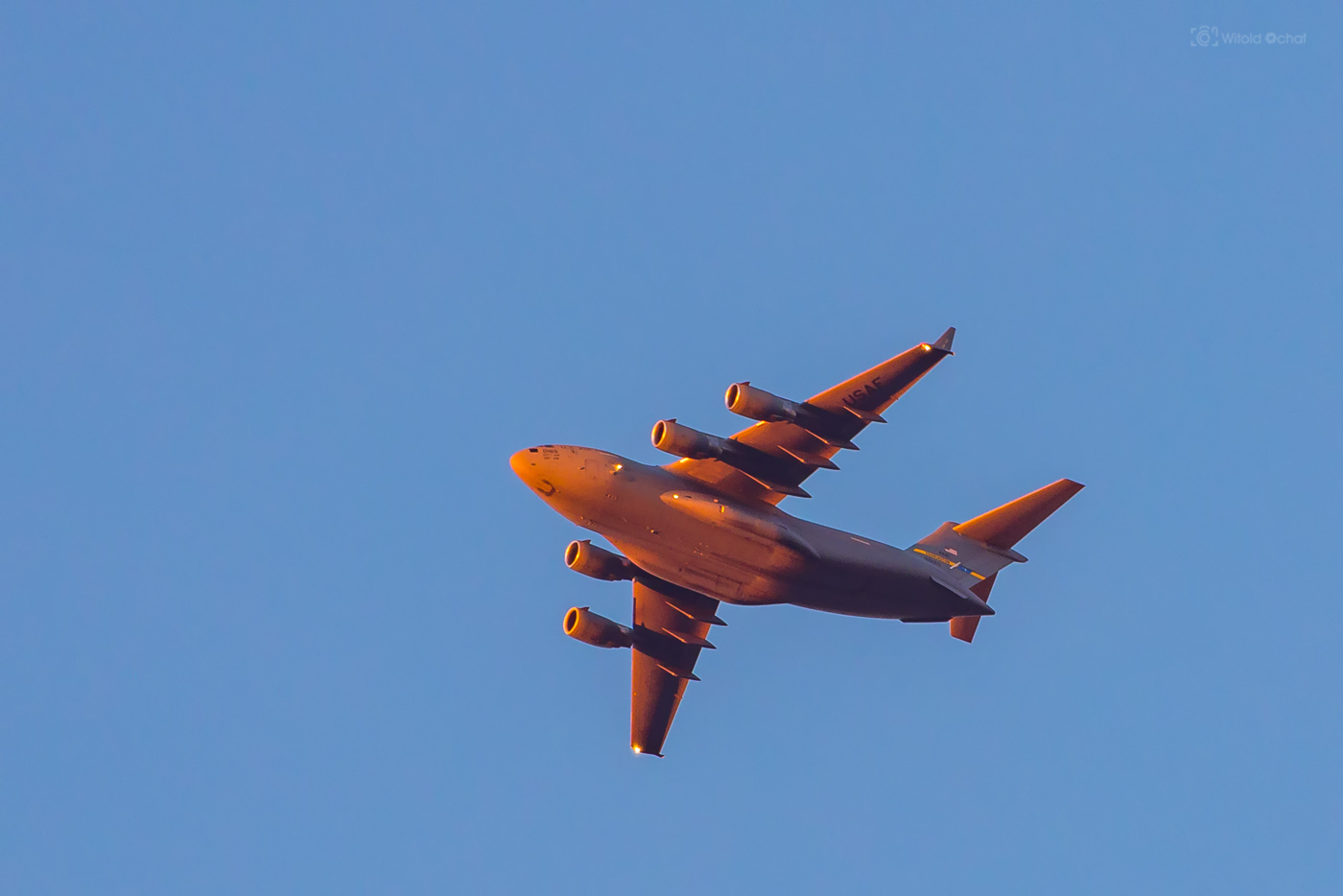 Od kilkunastu dni na pobliskie lotnisko w Jasionce przylatują amerykańskie samoloty transportowe. Pomijam fakt, w jakim celu i uprzejmie proszę o powstrzymanie się od ewentualnych politycznych komentarzy, bo to jest blog fotograficzny i tylko o fotografię tu chodzi.