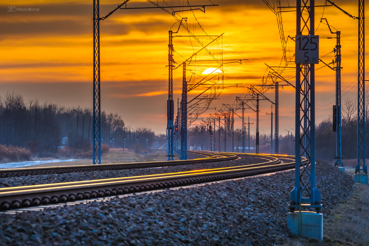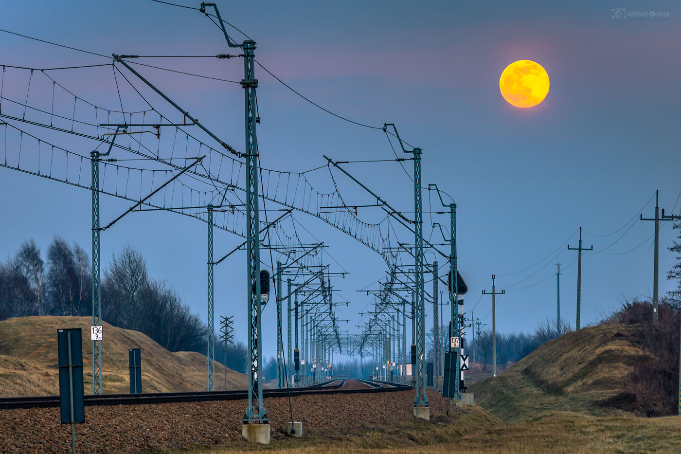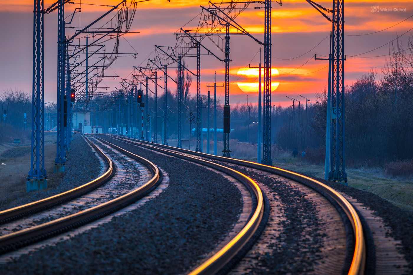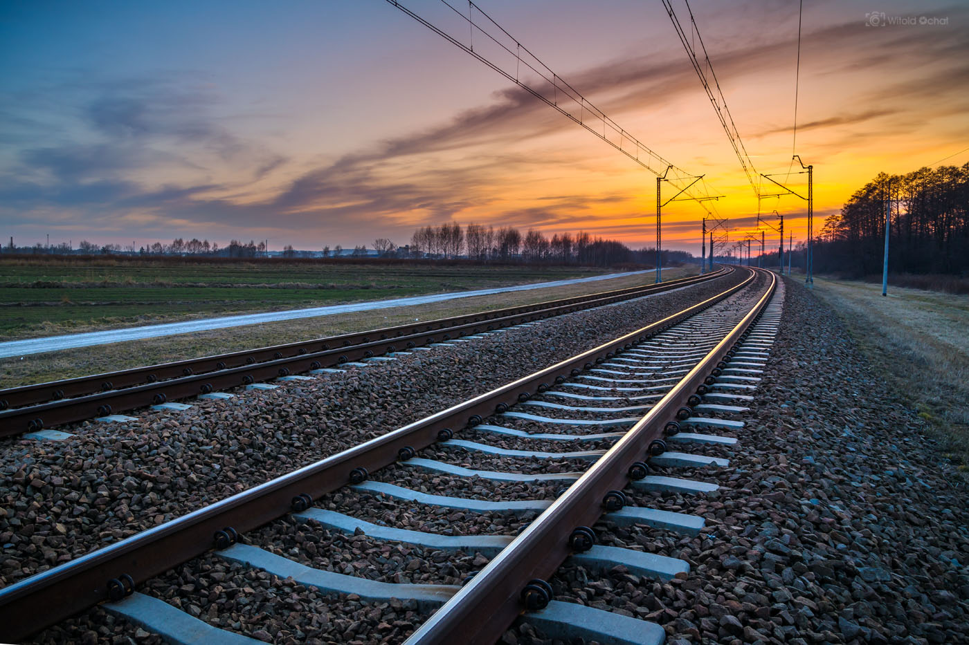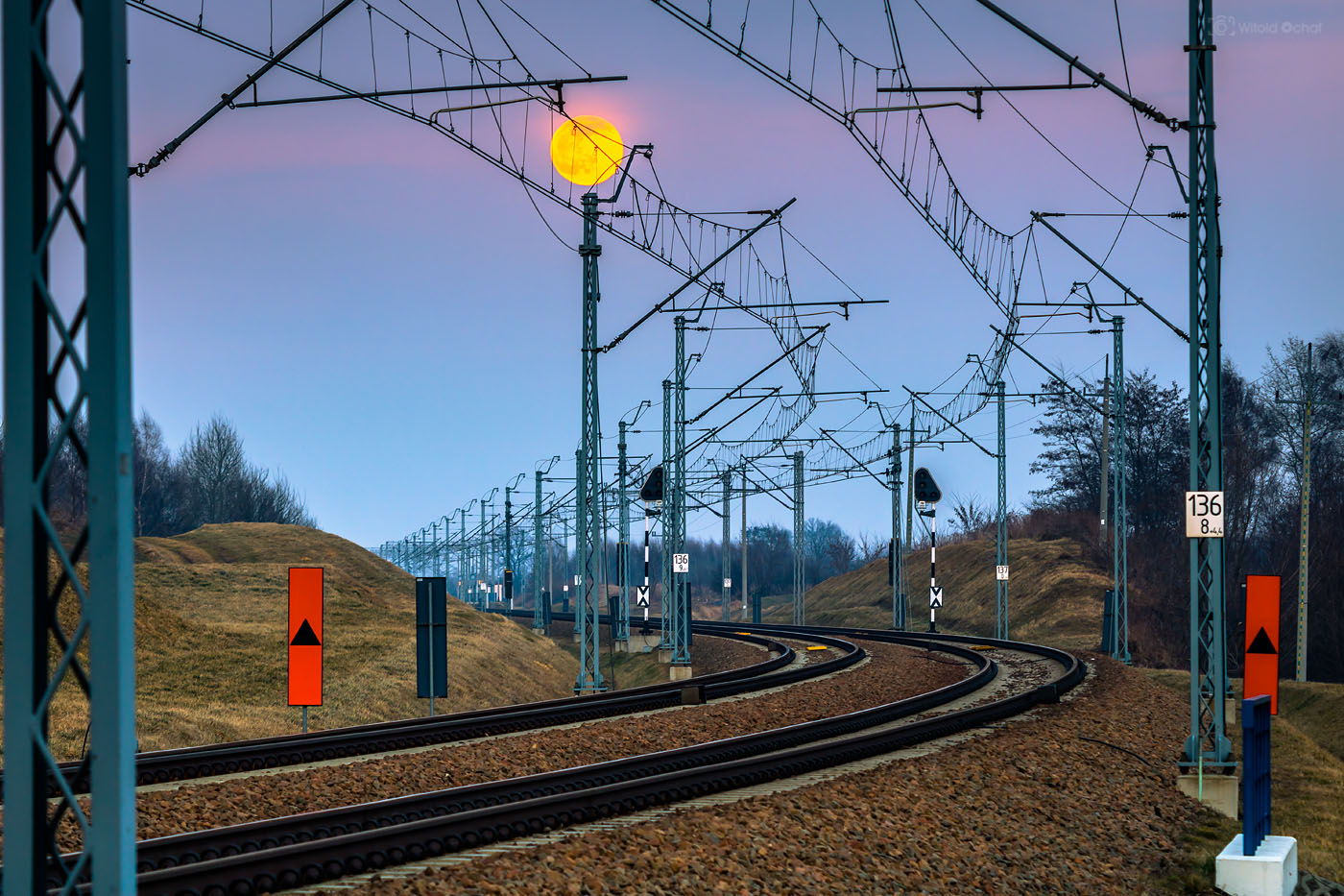 Tego wieczoru było podobnie. Na niebie działa się już magia, a pociąg nie nadjeżdżał. A ja stałem, przebierałem nóżkami i prawie zniosłem jajko. Aż w końcu nadjechał i oto mamy ten klimatyczny kolejowy obrazek 😉