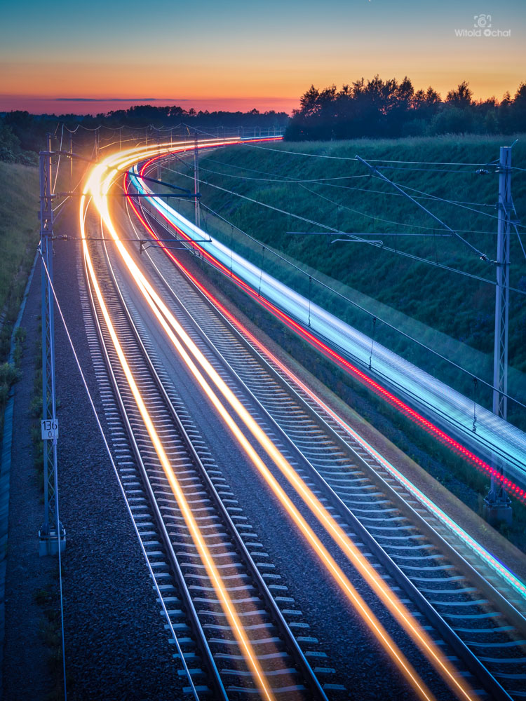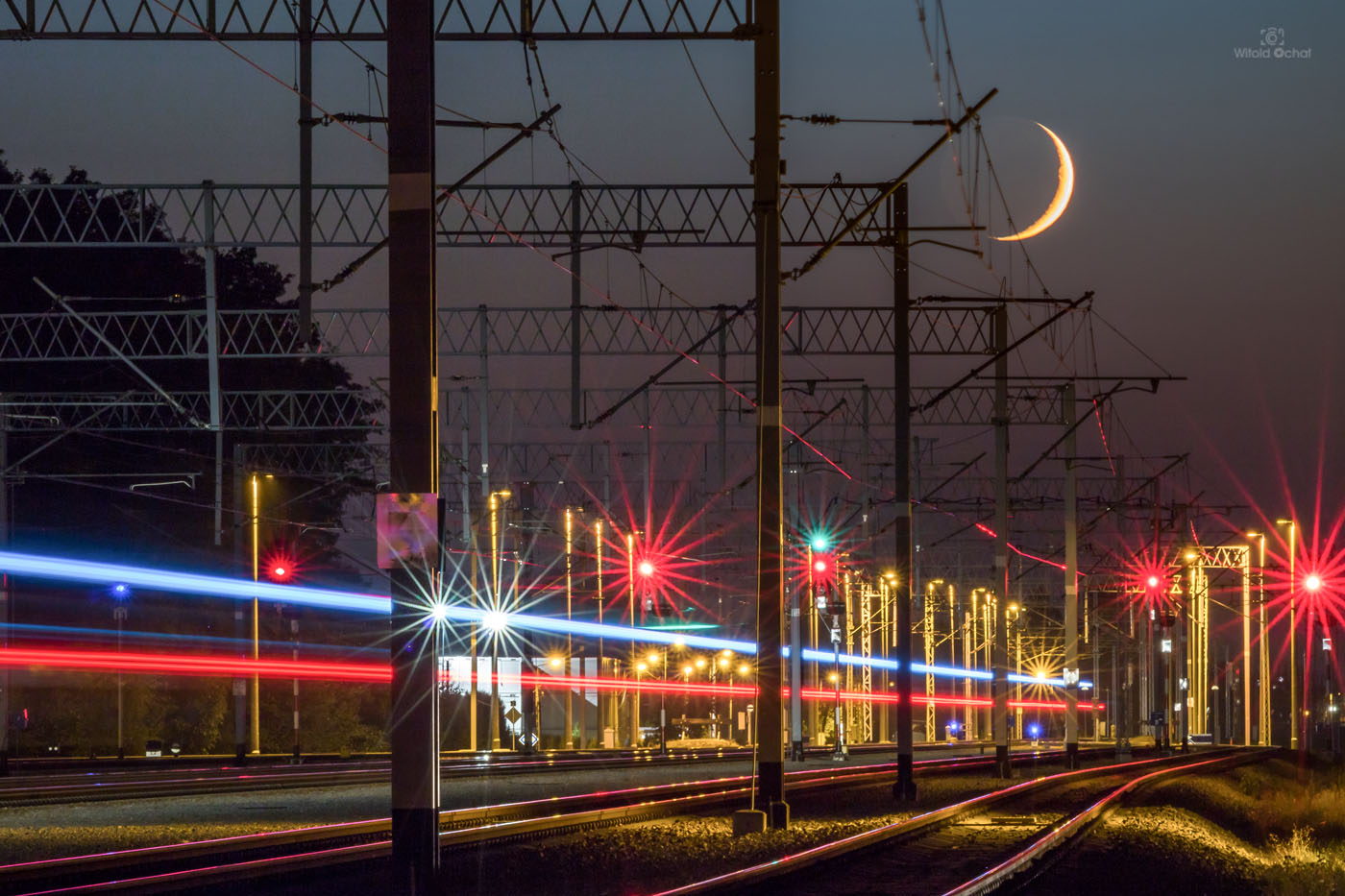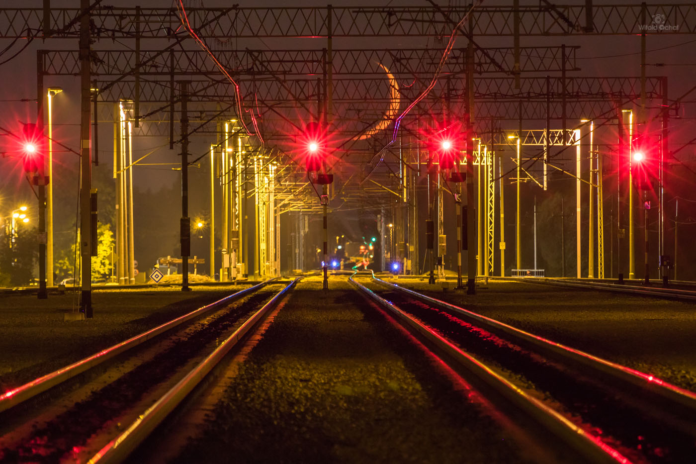Prognozy na dzisiejszy poranek przewidywały lekkie zachmurzenie i mgiełki. Niestety coś poszło nie tak i nad okolicą wisiał ciężki stratus. Moje plany fotograficzne wzięły w łeb, ale nie ma tego złego… Jadąc po ciemku na miejscówkę i spodziewając się najgorszego, zjechałem w okolicę torów kolejowych, gdzie udało się zrobić tę klimatyczną fotkę. Wiem, brakuje pociągu. Jechał, ale w moją stronę i prześwietlił zdjęcie swoimi reflektorami 😛