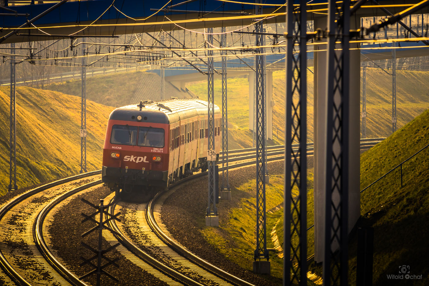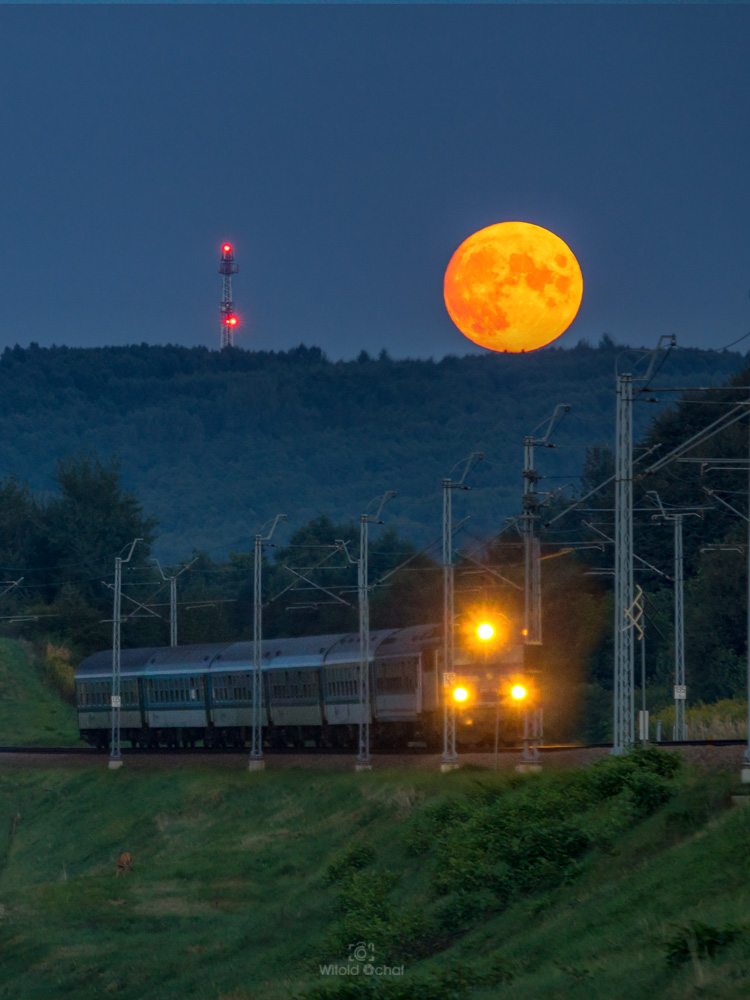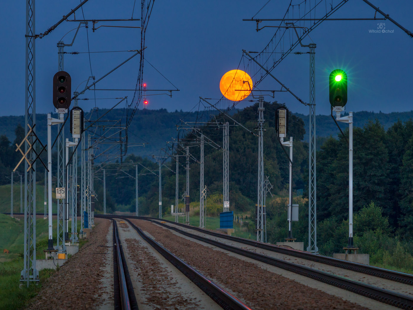 Prognozy na dzisiejszy poranek przewidywały lekkie zachmurzenie i mgiełki. Niestety coś poszło nie tak i nad okolicą wisiał ciężki stratus. Moje plany fotograficzne wzięły w łeb, ale nie ma tego złego… Jadąc po ciemku na miejscówkę i spodziewając się najgorszego, zjechałem w okolicę torów kolejowych, gdzie udało się zrobić tę klimatyczną fotkę. Wiem, brakuje pociągu. Jechał, ale w moją stronę i prześwietlił zdjęcie swoimi reflektorami 😛