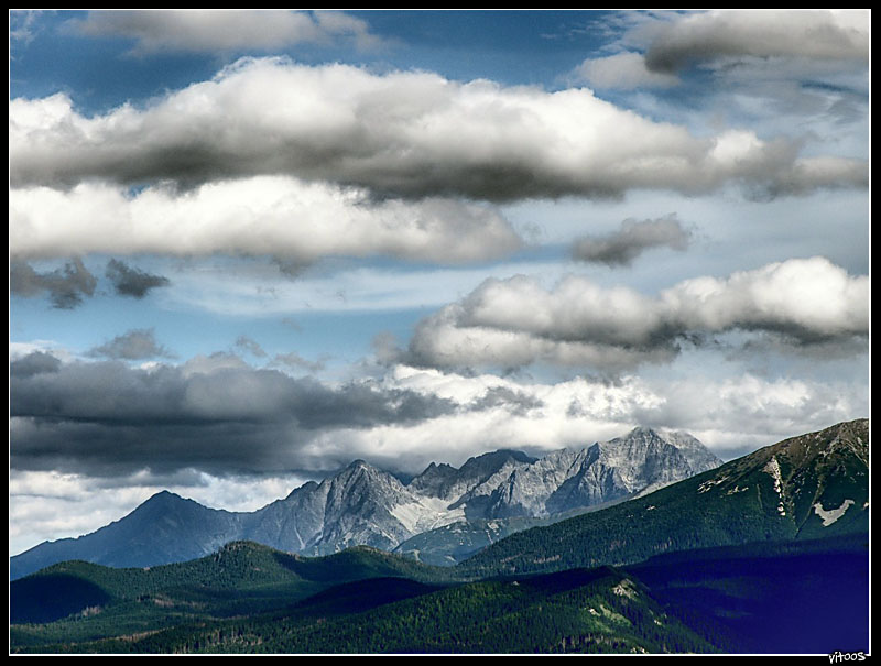 Aż z Gubałówki widok na od lewej Jagnięcy Szczyt, Kołowy Szczyt, Durny i Lodowy Szczyt.