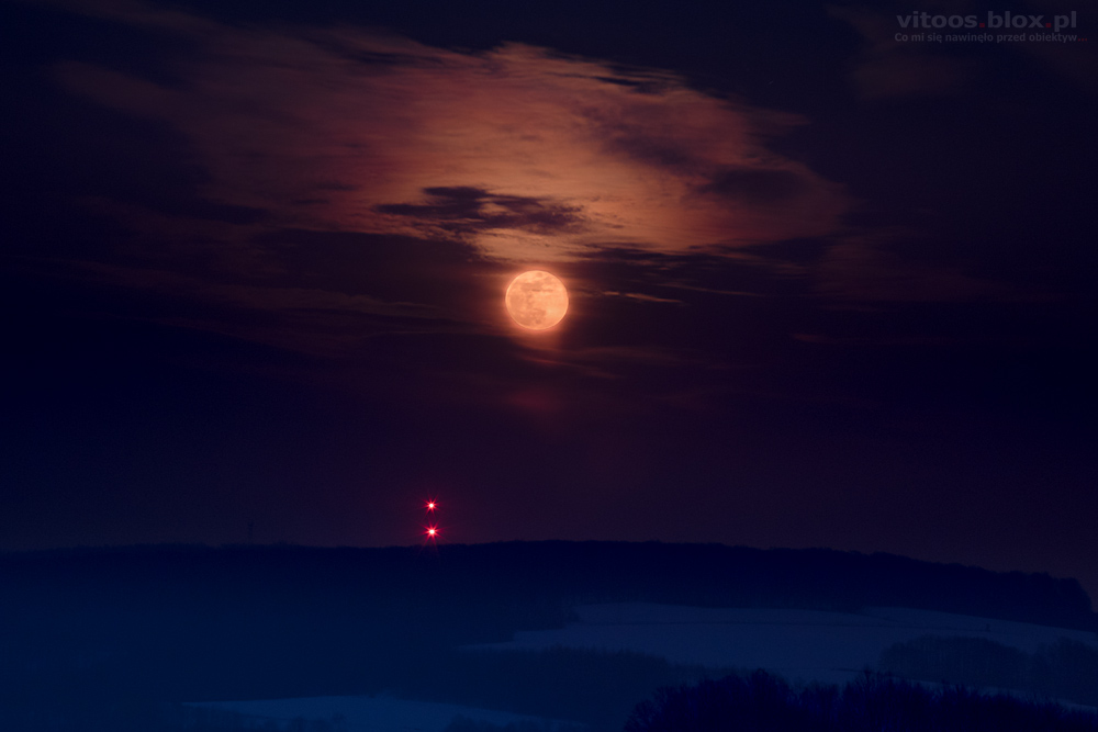 Trzecia pełnia Księżyca w tym roku i trzecie udane fotografowanie. Tym razem w ekstremalnych, jak dla mnie warunkach, przy -10 °C i wietrze potęgującym mróz.