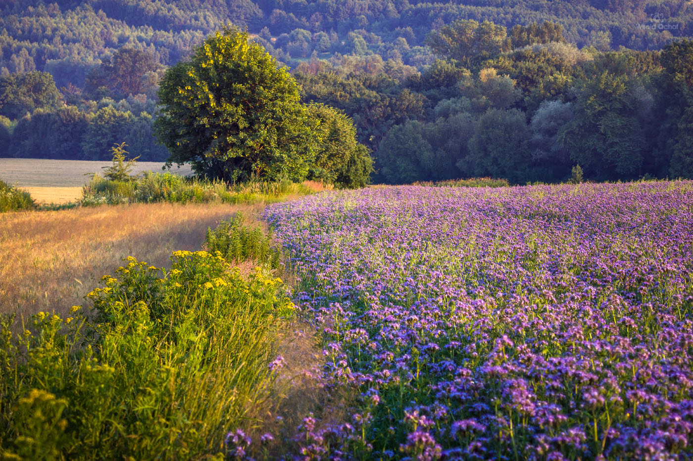 FOT. WITOLD OCHAŁ POWIAT ROPCZYCKO-SĘDZISZOWSKI FOTOGRAFIA KRAJOBRAZOWA PODKARPACIE SĘDZISZÓW MAŁOPOLSKI POLE FACELII FACELIA BŁĘKITNA