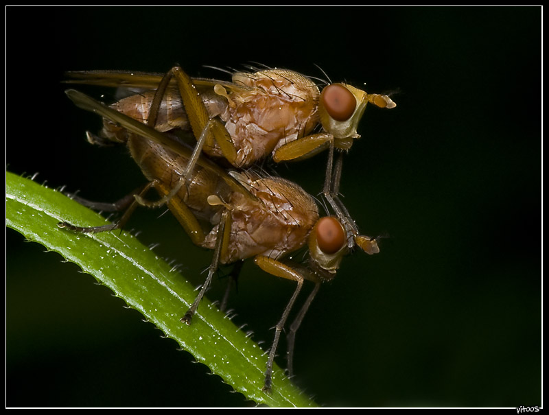 Nie wiem, co to za owady, a najbardziej zaintrygowało mnie to, że obydwa wyglądają na tą samą płeć…. Czyżby i wśród owadów były osobniki homo… 😉