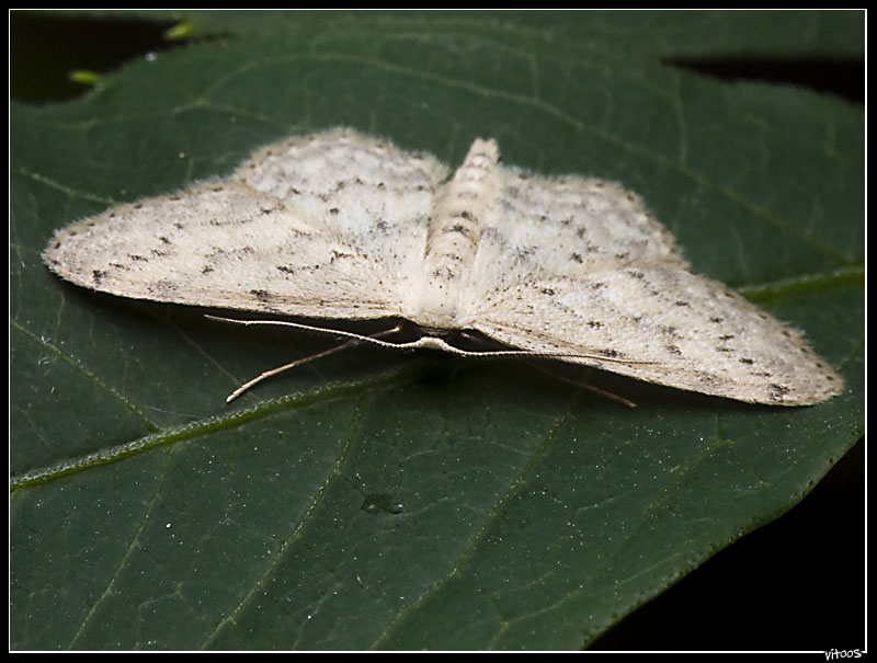 …siedziała sobie na liściu ćma z rodziny Geometridae. Zapewne jakaś pospolita, bo widzę ich dużo i często, jednak zawsze siadają w gęstej trawie, że ciężko je sfotografować.