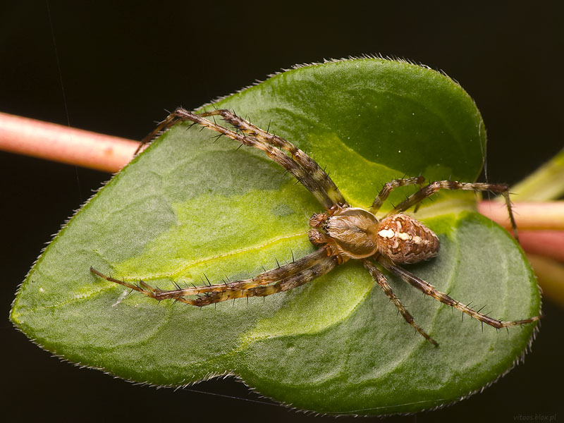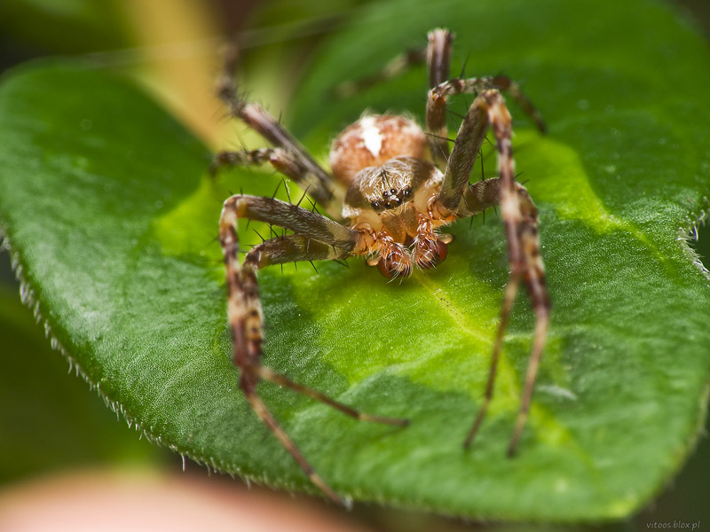 Dawno nie było u mnie kwietnika (Misumena vatia). Tego tu zastałem tuż po popołudniowym prysznicu, jeszcze nie zdążył się do końca osuszyć. Wiem, wiem, niezbyt to uprzejme z mojej strony…
