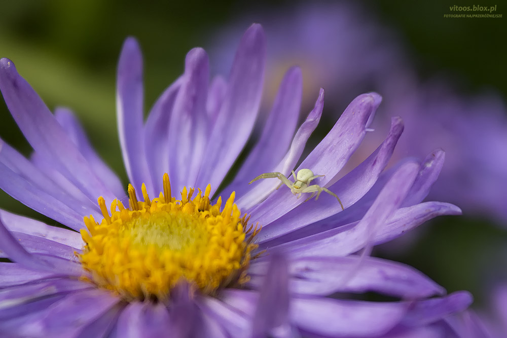 Kiedy w ogrodzie zasadziliśmy astry nowoangielskie (Symphyotrichum novae-angliae), zwane również marcinkami, zaraz wprowadziło się na nie kilka kwietników (Misumena vatia).