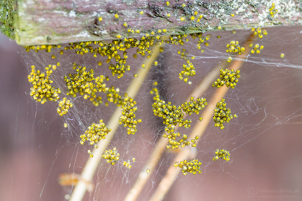 Jesień to zdecydowanie czas pająków. Spacerując po łące staram się zawsze omijać ich pajęczyny, ale nie zawsze się to udaje. Tego spotkałem w końcówce lata nad stawem i o mało nie wpadłem do wody omijając jego pajęczą konstrukcję 😉