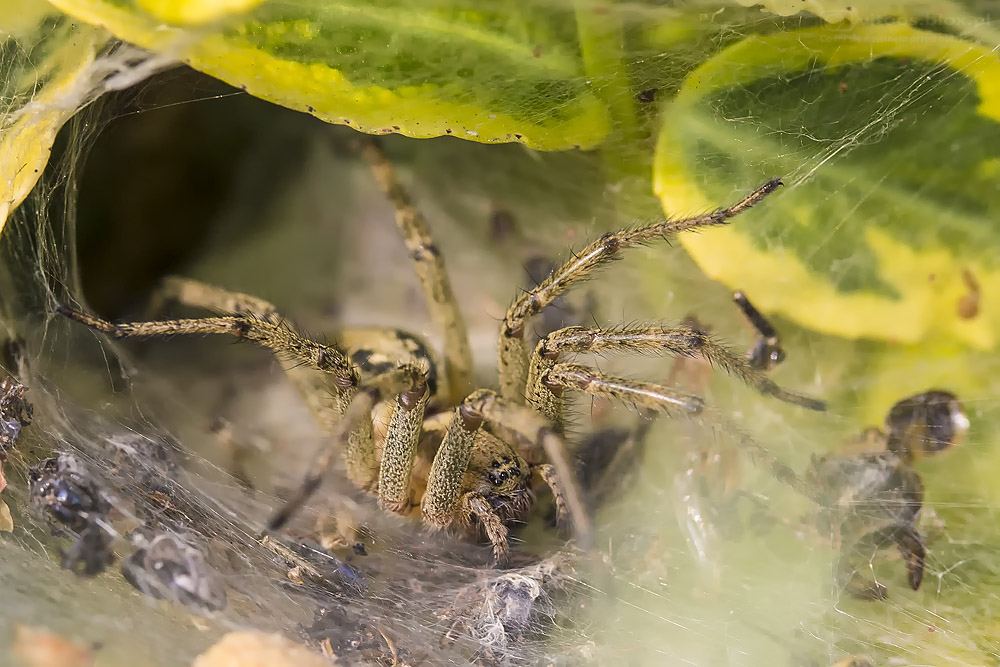Początek lata to ich czas. Robią te swoje pajęczynowe tunele gdzie się tylko da. W ogrodzie co rusz się na nie napotykam.