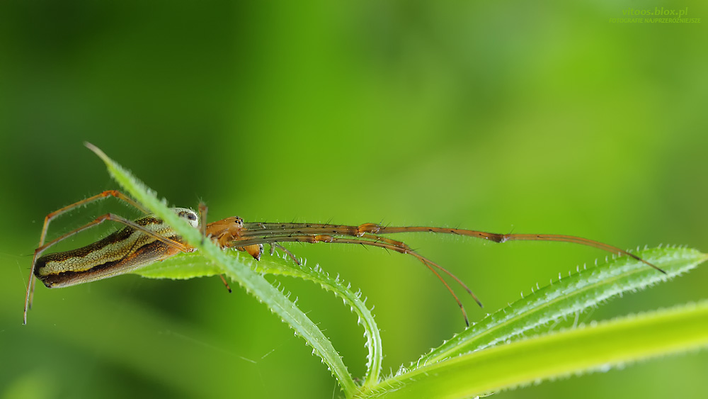 Dziś ciekawie ubarwiony pajączek z ubiegłorocznego przełomu wiosny i lata.