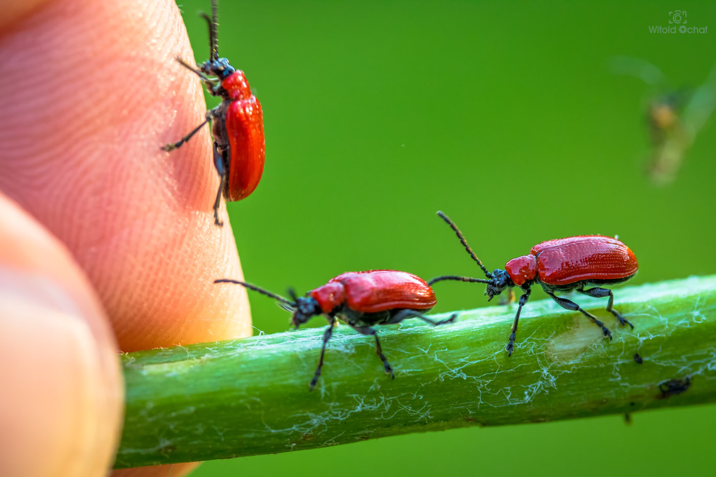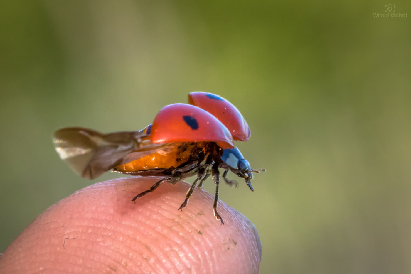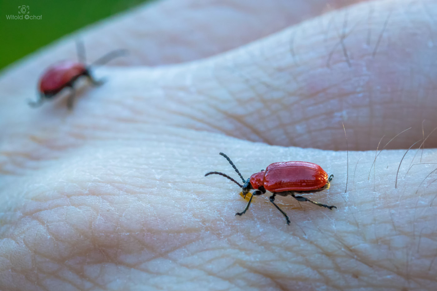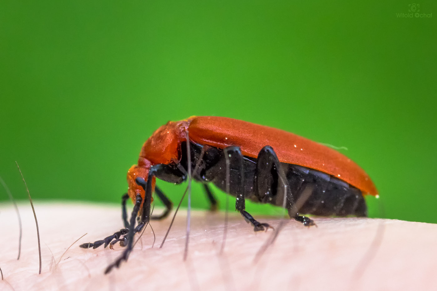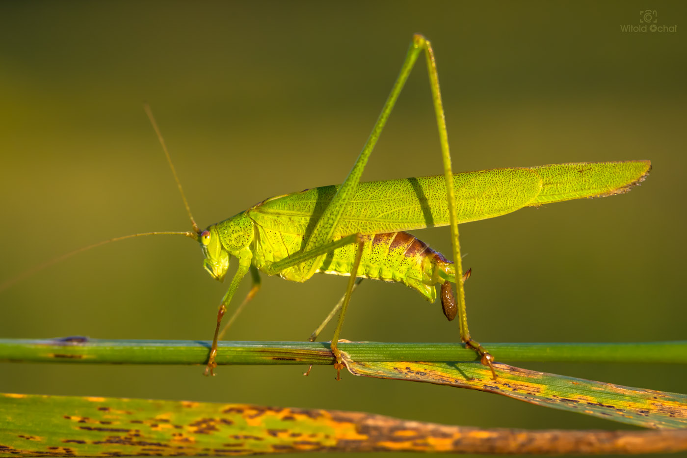 Aż do wczoraj. Zauważyłem go u siebie w ogródku. Byłem przekonany, że szybko ucieknie, jak to ma w zwyczaju. Ale nie! Nie tym razem. Mało tego, nieproszony elegancko wyszedł wyżej z liści liliowca i jakby specjalnie ustawił się do zdjęcia.