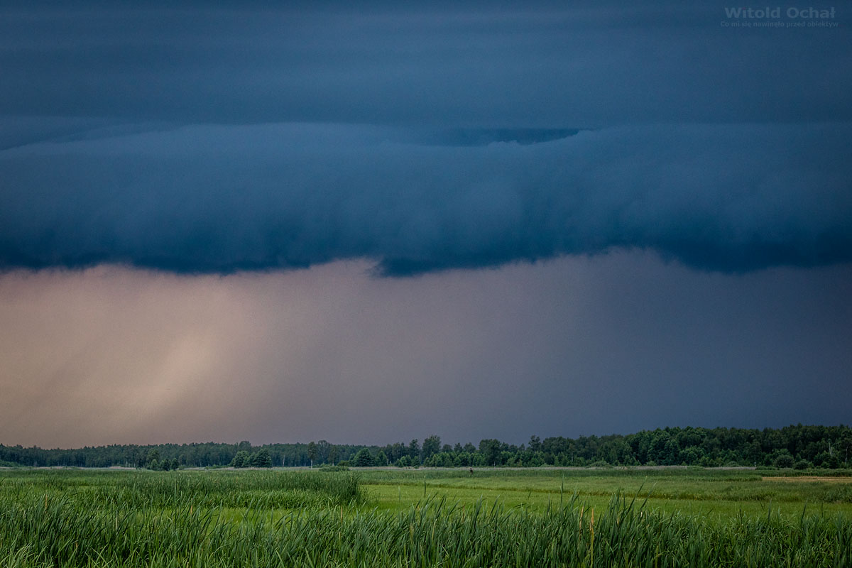 Nie była to burza. Ani raz nie zagrzmiało. Jednak kiedy spaceruje się daleko od samochodu, a nad horyzontem widać ciemną chmurę i gęste smugi opadowe można się wystraszyć. Zwłaszcza o sprzęt, że zamoknie. Ja się tym nie przejmowałem, bo zawsze razem z aparatem noszę gruby foliowy worek, tak na wszelki wypadek.